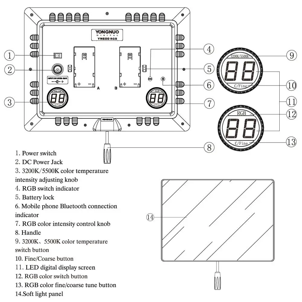 Мобильный телефон можно загрузить с официального сайта YONGNUO. Мобильный телефон в руке, вы можете управлять YN600 RGB через мобильный телефон, читать интенсивность тока и параметры канала, а также управлять интенсивностью и переключателем 8 групп светодиодный свет отдельно в соответствии с вашими потребностями.