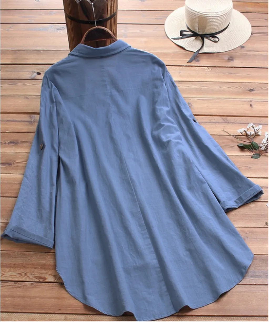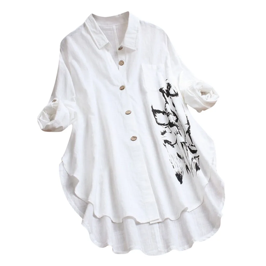 Женская Повседневная Свободная блузка с длинными рукавами и принтом на пуговицах; большие размеры