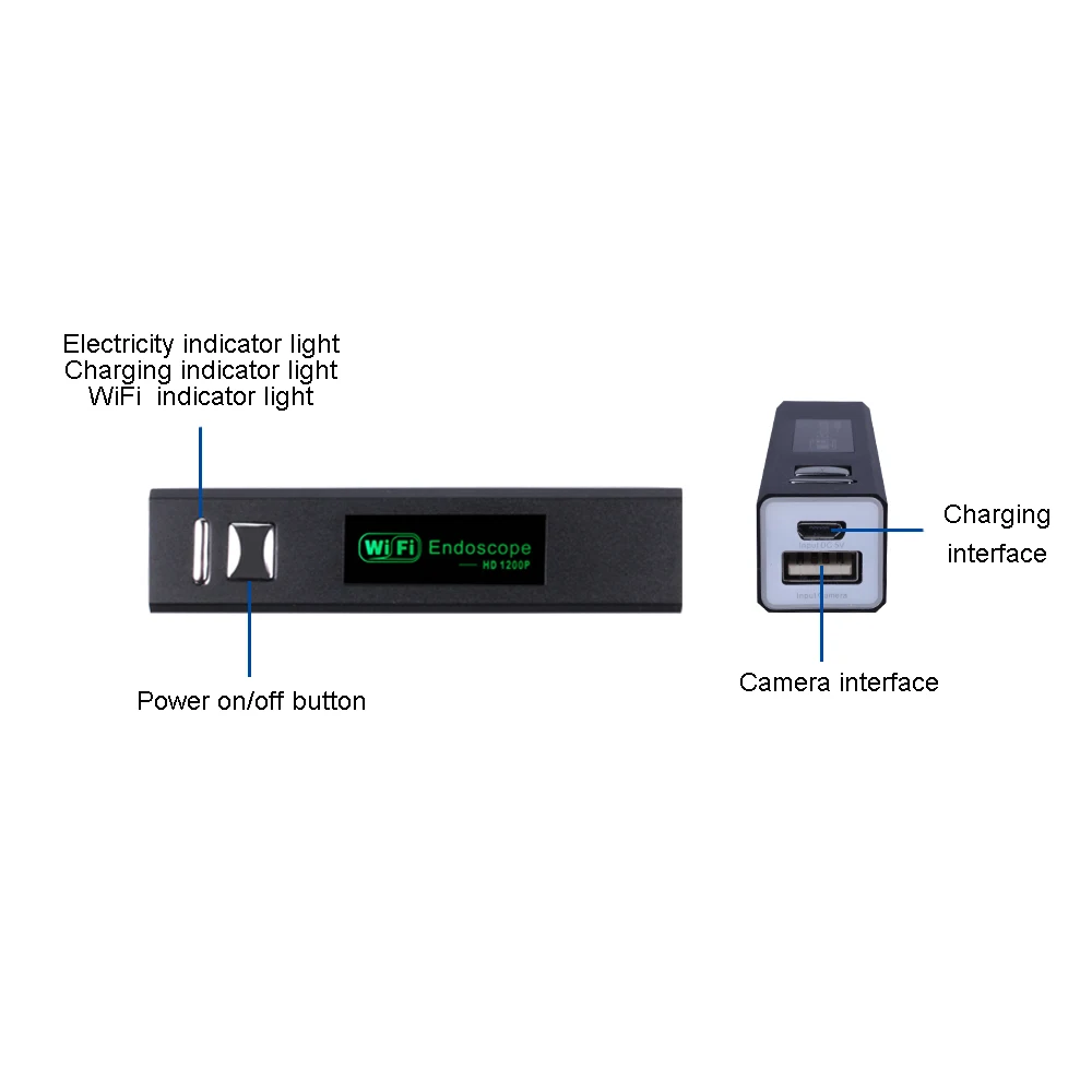 Характеристика: ● Новинка, высокое качество ● Камера CMOS с высоким разрешением 720P/1200P ● Беспроводное подключение Wi-Fi, простое подключение и использование ● Мини-размер, вес, портативный светильник ● 8 Светодиодный светильник, регулировка яркости ● IP67 водонепроницаемый дизайн ● Совместимость с системами iOS / Android / Windows / Mac ● С присоской для облегчения установки WiFi устройств на телефоне или других местах на поверхности плоской задней панели ● Встроенный аккумулятор емкостью 500 мА · ч с Wi-Fi может быть 45 минут, через блок питания 5 В для работы ● Поддержка камеры и видео записи телефона