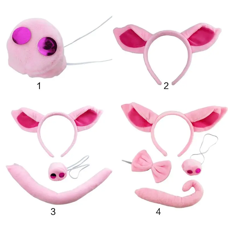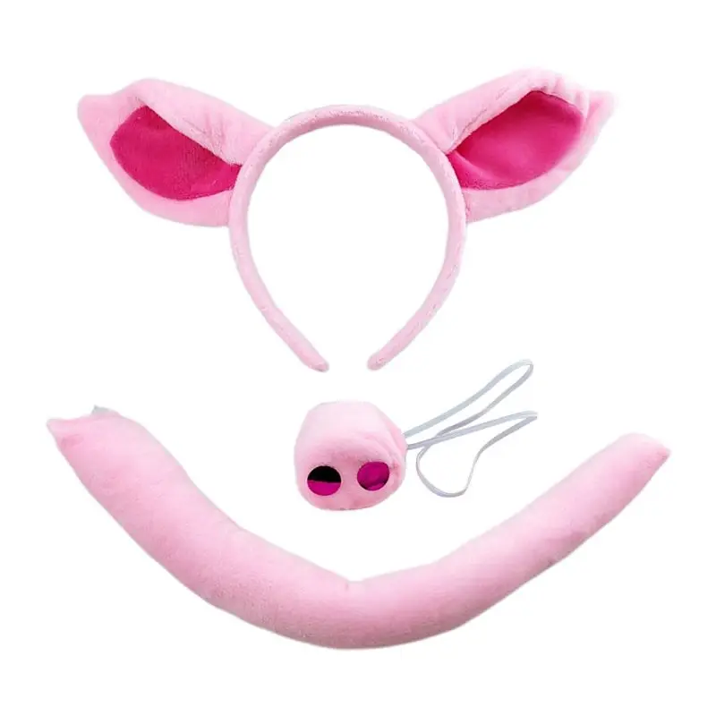 Супер Мягкая повязка на голову с ушками свиньи, хвостик носа, Хэллоуин, головной убор с животными, аксессуары для костюмированной вечеринки, розовый обруч с копилкой