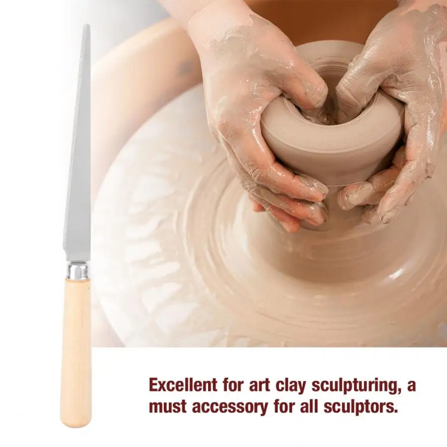 Отлично подходит для глина для художественных работ скульптуры, обязательный аксессуар для всех скульпторов. Эргономичная ручка обеспечивает удобный и Нескользящий Захват. Идеально подходит для многих задач обрезки, резьбы и скульптуры. Используется для обрезки отходов от золы заливки отверстия и удаления следов от пресс-формы от зеленого литья. Изготовлен из премиум-классаМеталл и дерево, прочный и доступен для длительного срока службы.