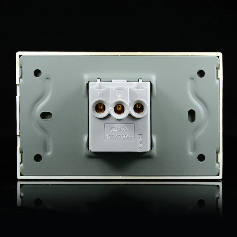 Название продукта: 118 мм золото волочения проволоки медный дактилоскопический запорный клапан многофункциональная переменного тока 3-полюсный розетки Размер изделия: 118*74 мм Рабочее напряжение: 127-250 В 15A Материал гнезда: огнестойкий поликарбонат + латунь Гарантийный срок: 10 лет Сертификат: CE / Rosh / CCC