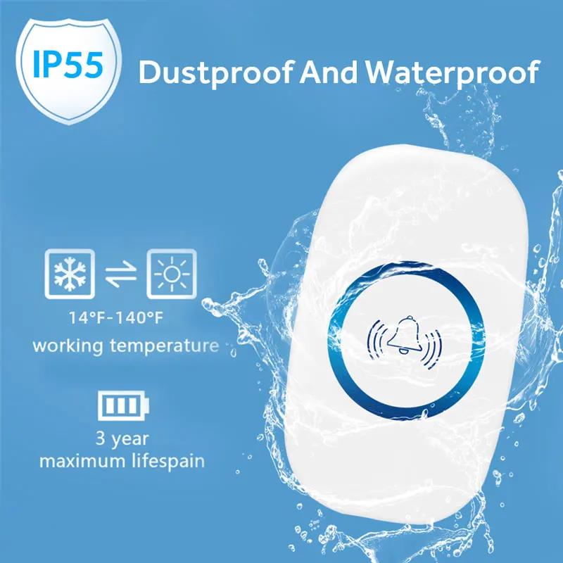 Круговой СВЕТОДИОДНЫЙ светильник приемника мигает, что делает его идеальным для тех, кто Пожилых людей. Светящиеся кнопки помогают посетителям найти дверной звонок в ночное время и позволяют вам знать, если ваш дверной Звонок Работает. Если у вас есть маленькие дети, вы можете изменить, чтобы осветить, а не chime во время сна