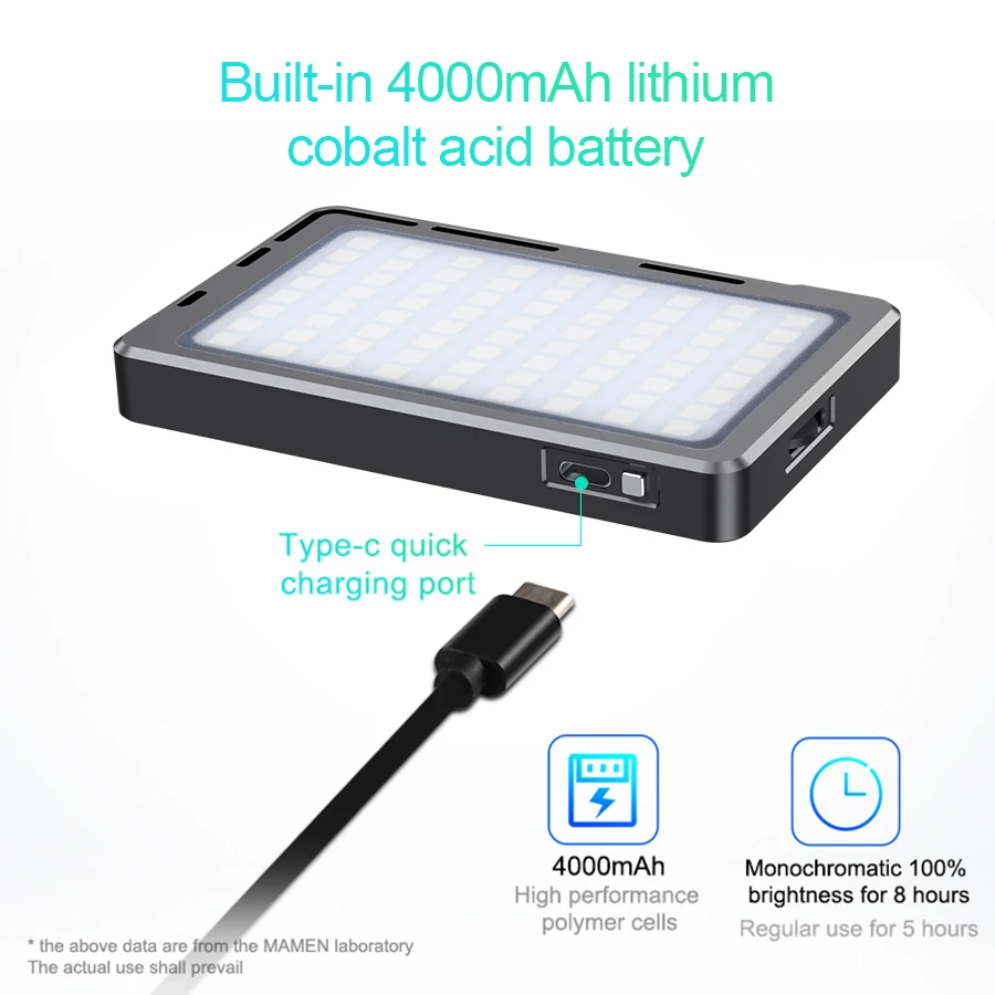 MAMEN 72 мини светодиодная лампа для видео RGB 1000k-9000k для камеры телефона DSLR студийное освещение портативная Встроенная батарея CRI>96