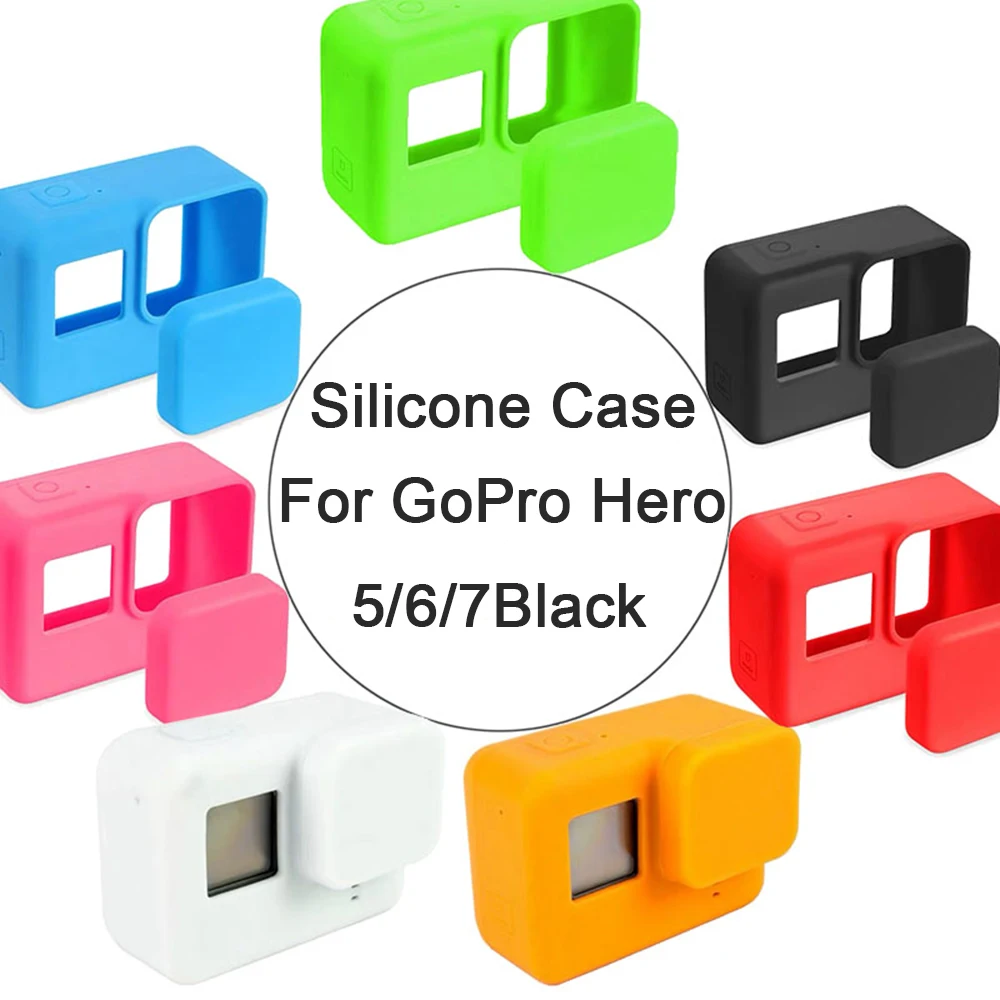 Конфеты Цвет защитный силиконовый чехол кожи + крышка объектива для спортивной экшн-камеры Go Pro Hero 5 6 7 черный Hero Камера защитные аксессуары