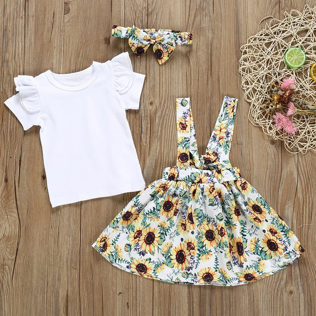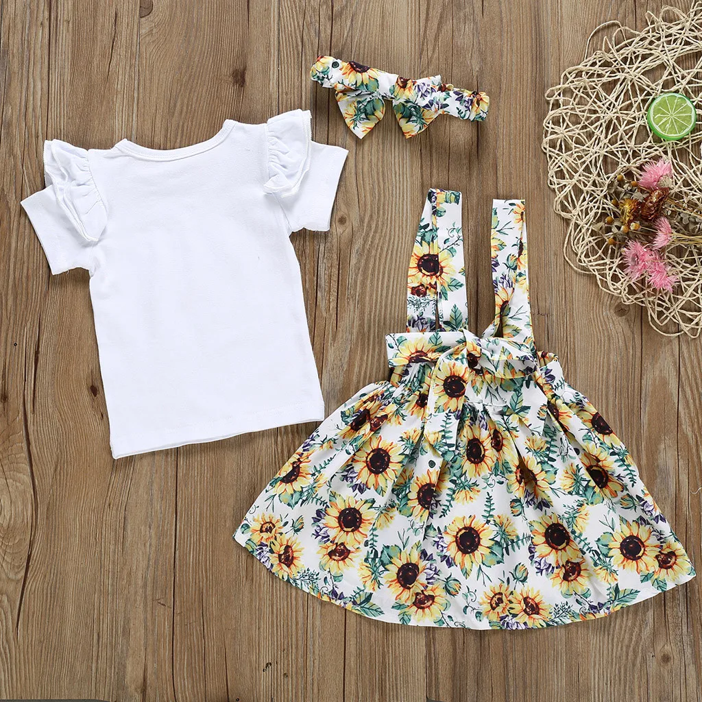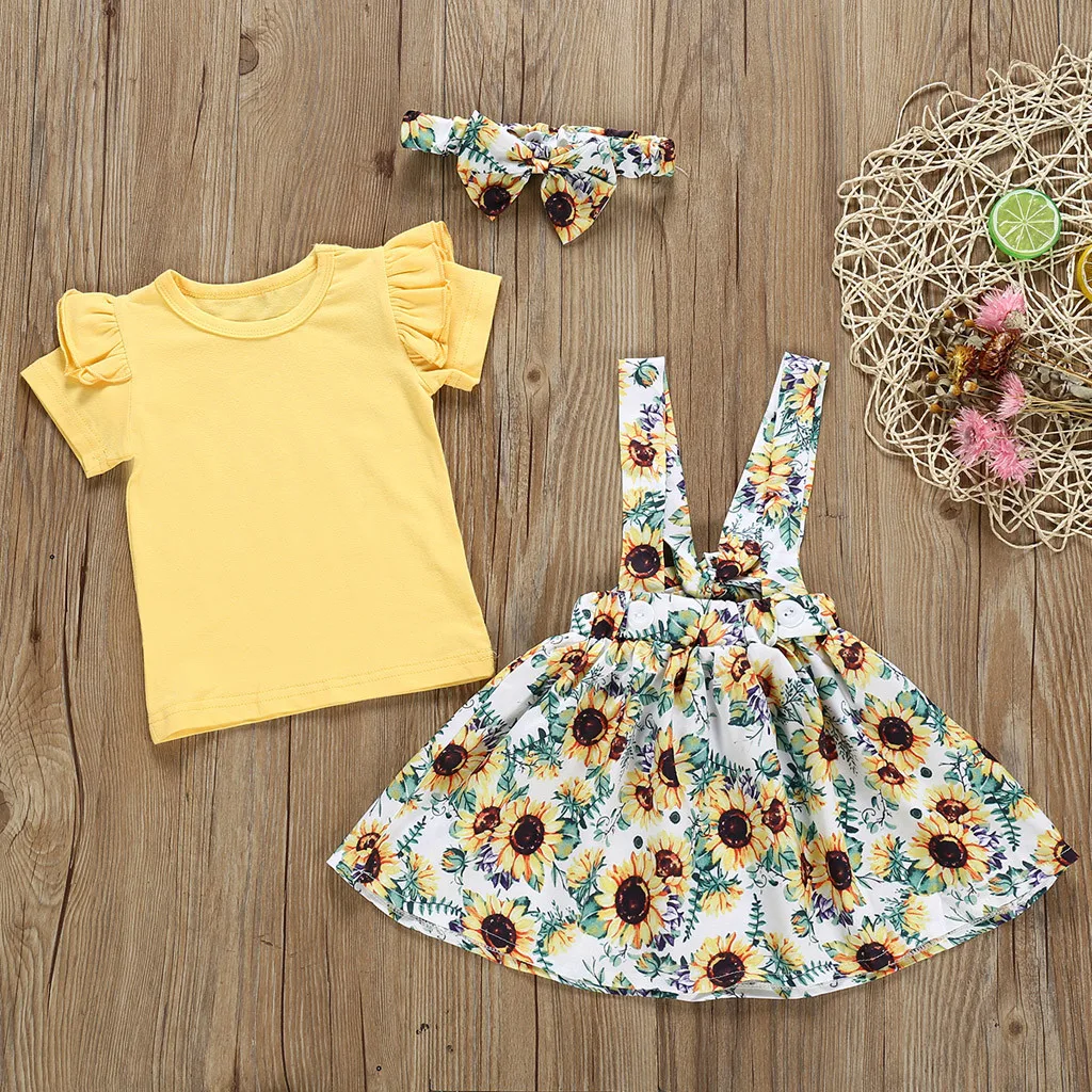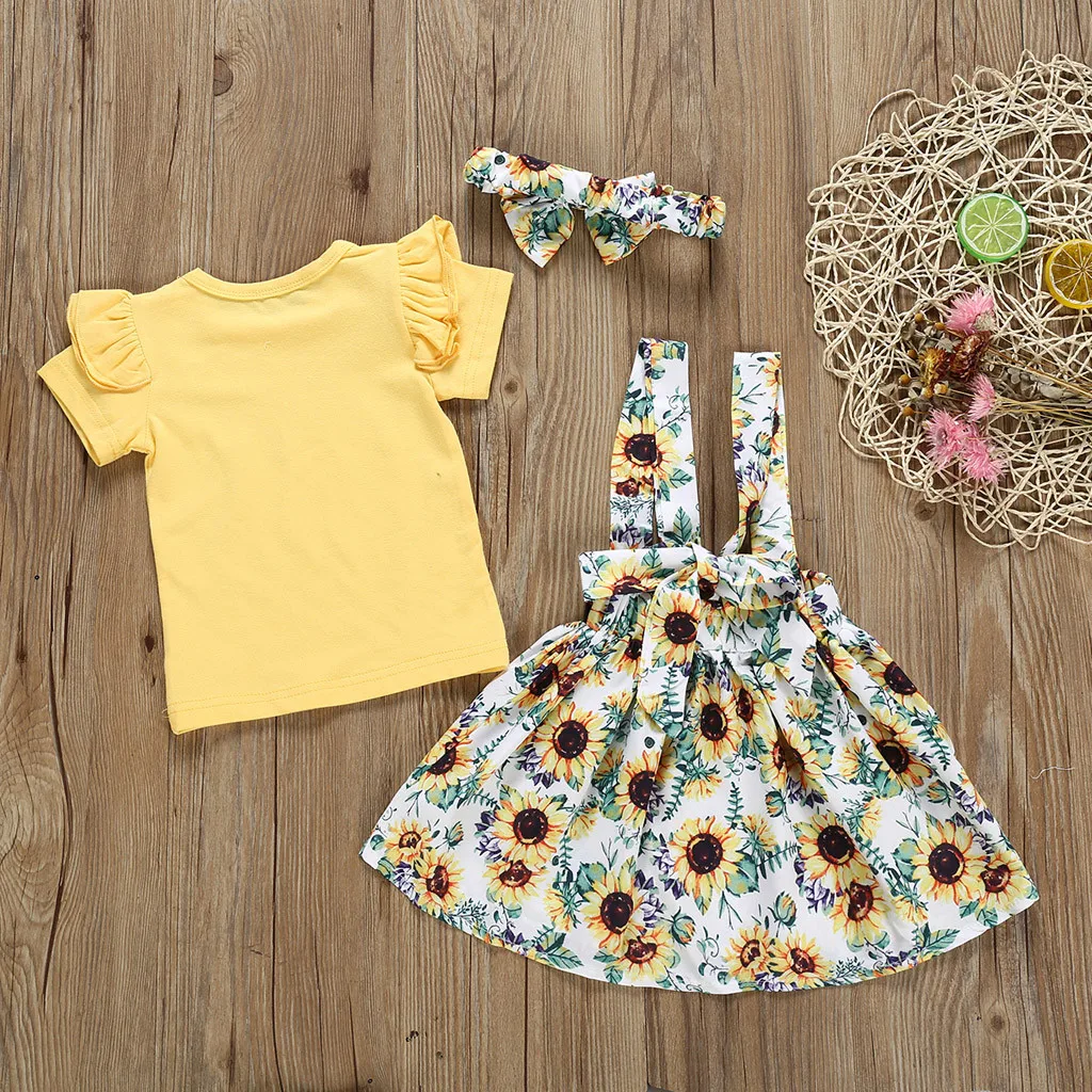 Топы для маленьких девочек; юбки с цветочным принтом и подсолнухами; летняя одежда