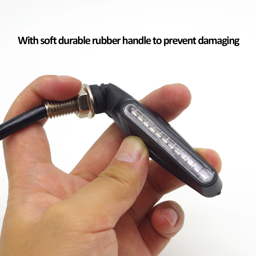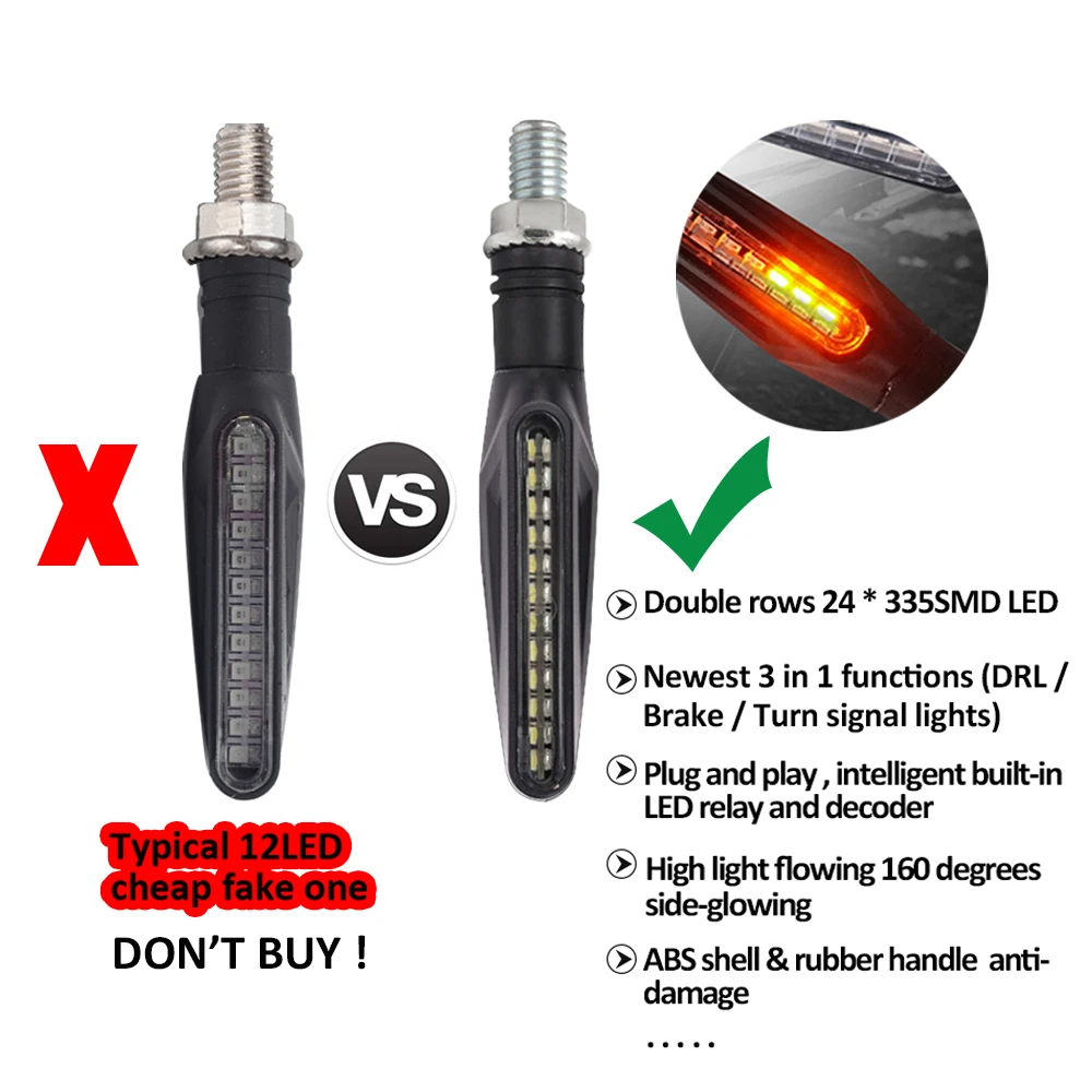 (1)3 цвета светильник и 2 режима работы в 1 светодиодный светильник:Режим DRL (Дневной светильник): белый светильник s + янтарный сигнальный светильник с поворотом (белый светильник s обычно используется спереди, до белого провода)Режим тормоза (стоп): мигающий красный светильник s (при замедлении/остановке) + янтарный сигнальный светильник. (Красные огни обычно используются в задней части, к красной проволоке)(2) легко установить, Подключи и работай. Со встроенным светодиодный реле и адаптацией резистора. Может использоваться на более чем 95% мотоциклах с светодиодный подсветкой. Для очень немногих старых мотоциклов, светильник helogen, может потребоваться дополнительный светодиодный резистор или резисторы, чтобы помочь получить эффект струящейся воды. У нас есть эти запасные части, если у вас есть какие-либо сомнения, пожалуйста, свяжитесь с нами.Длина провода: 20 смОтметка: с отметкой «CE», Качество обещано.Универсальный подходит для всех мотоциклов диаметром 10 мм (M10) монтажное отверстие.IP68 водонепроницаемый