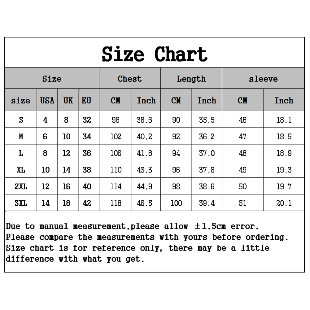 [Наш Размер 2XL] Грудь: 114 см/44,9 дюйма, рукав: 50 см/19,7 дюйма, длина: 98 см/38,6 дюйма (приблизительно)