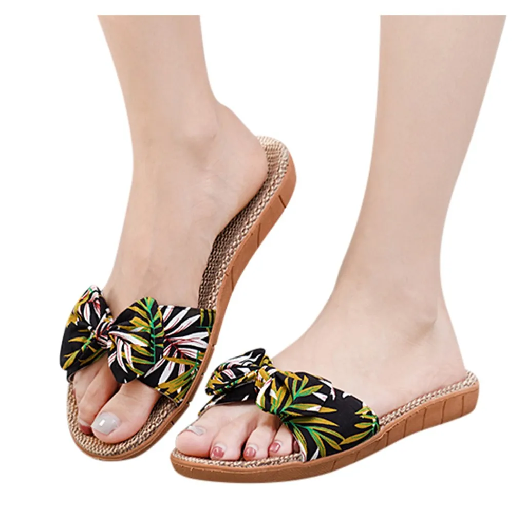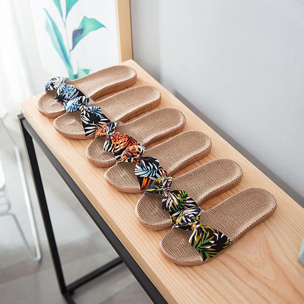 Женская обувьЛето Льняные Вьетнамки с цветочным рисунком; пляжная обувь; сандалии; Тапочки