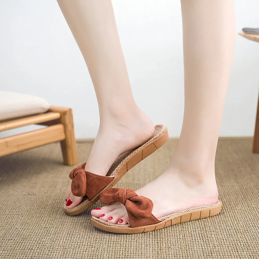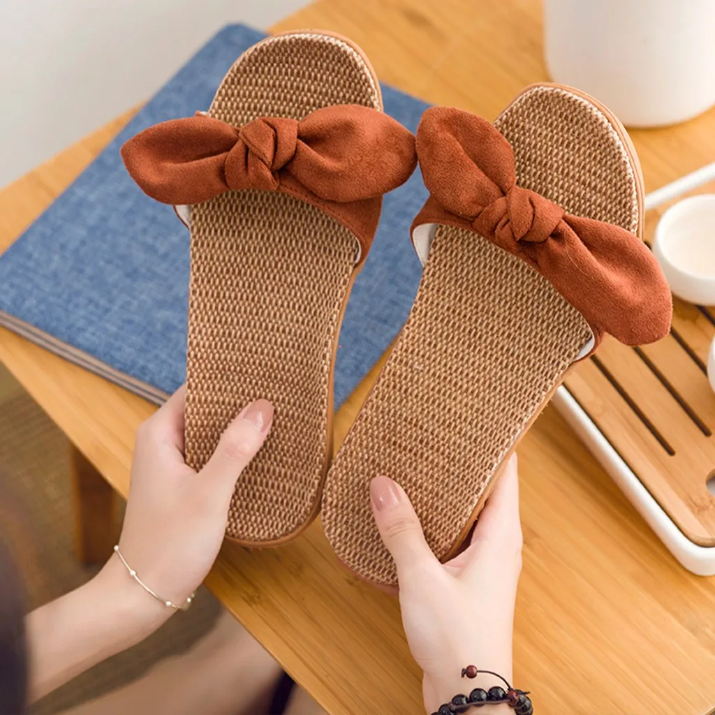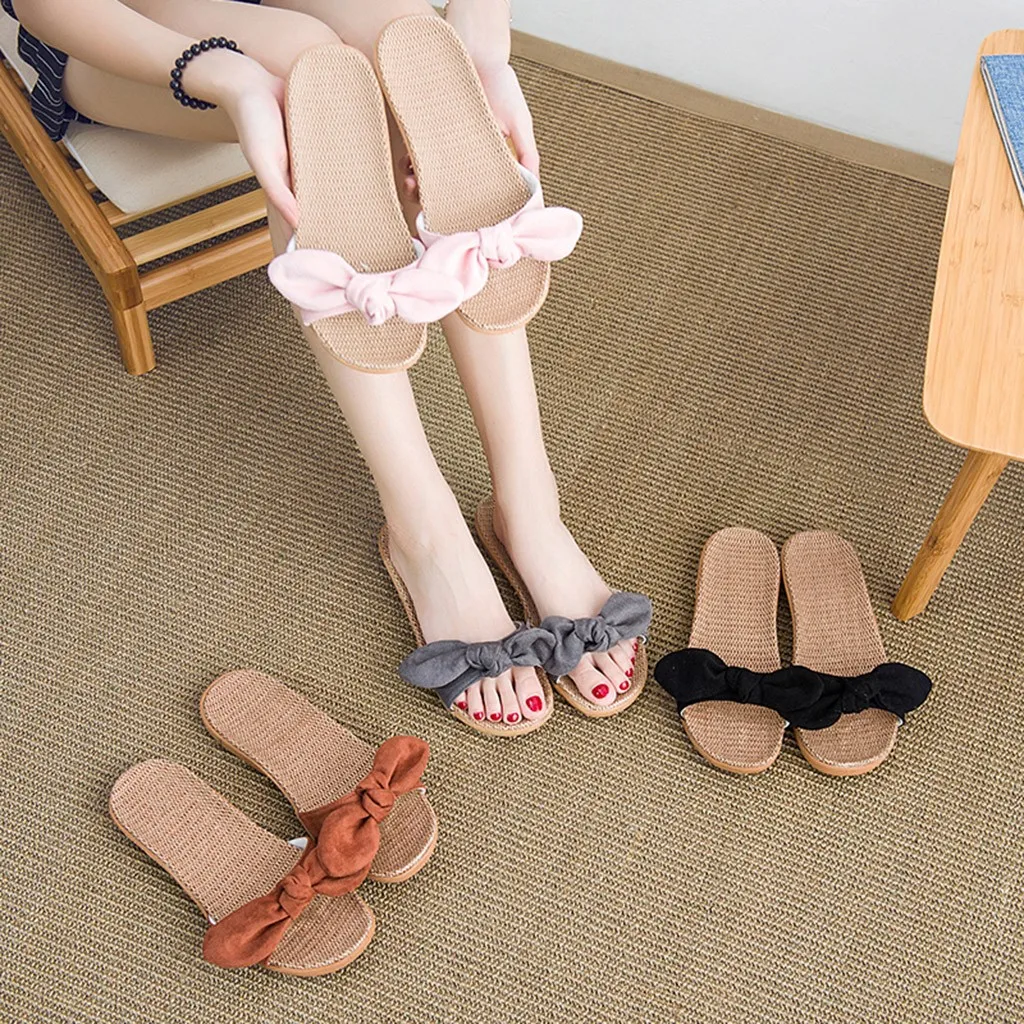 Для женщин женскийЛетнее платье С бантомЛьняные Вьетнамки; пляжная обувь; сандалии; Тапочки