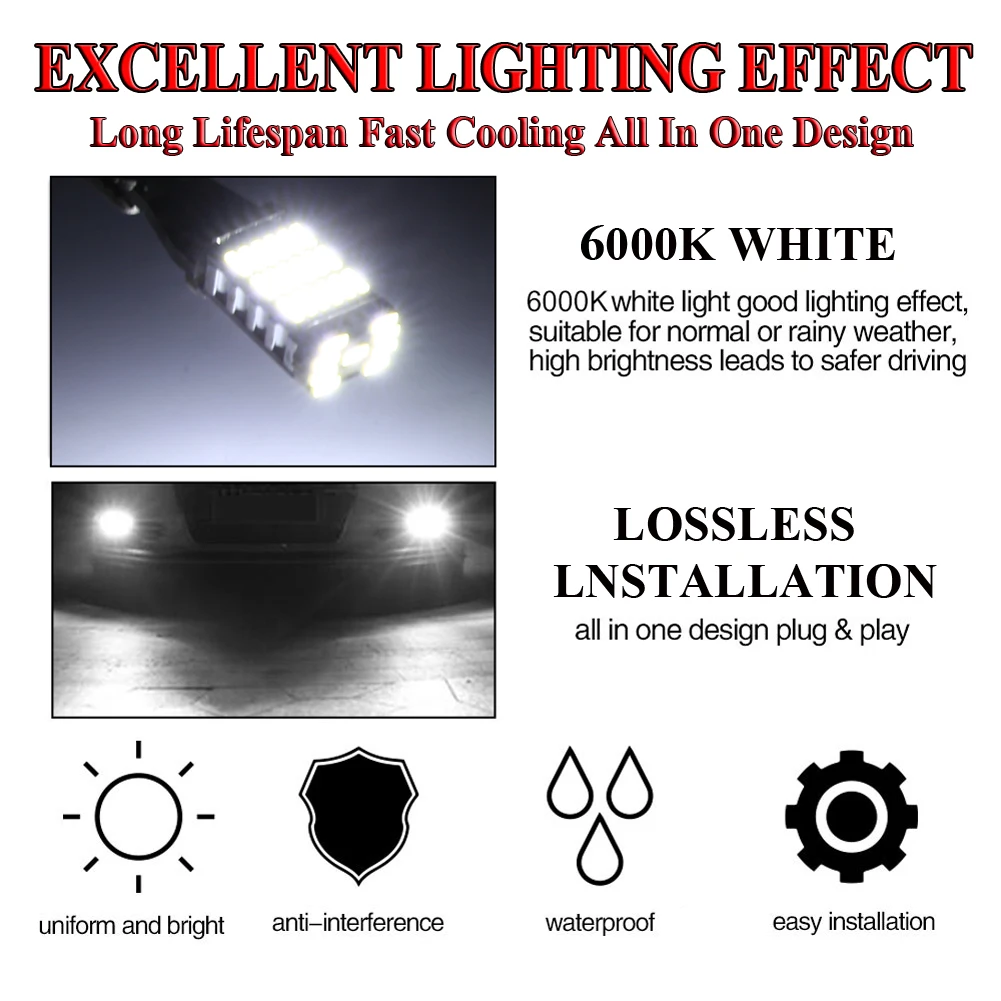 * Около 1300 люмен на T15 912 921 светодиодный светильник резервного копирования, 2600 люмен для обоих 912 921 светодиодный светильник заднего хода. Полный угол обзора 360 градусов.