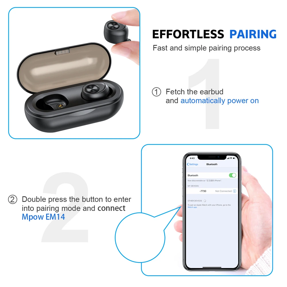 * 2. автоматическое Сопряжение, автоматическая зарядка-как только вы сравните эти изысканные наушники с вашим телефоном/устройством (см. Руководство пользователя), при следующем снятии их с чехол для телефона, они автоматически откроют и установят соединение с вами, вы должны быть подключены вручную. После каждого использования, после того как положить их обратно в чехол для зарядки, до тех пор, пока вы снова нажимаете кнопку «Play» на плейлисте, они автоматически выключатся и начнут зарядку для работы.