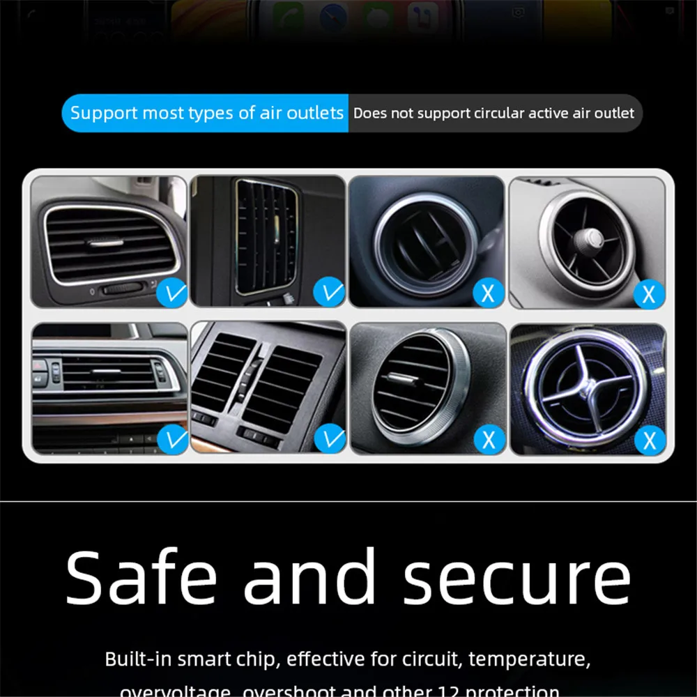 【Беспроводное быстрое автомобильное зарядное устройство, вы можете безопасно установить этот держатель телефона на вентиляционные отверстия автомобиля, чтобы завершить установку в считанные секунды, без каких-либо инструментов. Есть вращающийся на 360 градусов шар, который дает вам гибкий угол обзора как для горизонтального, так и для вертикального просмотра.