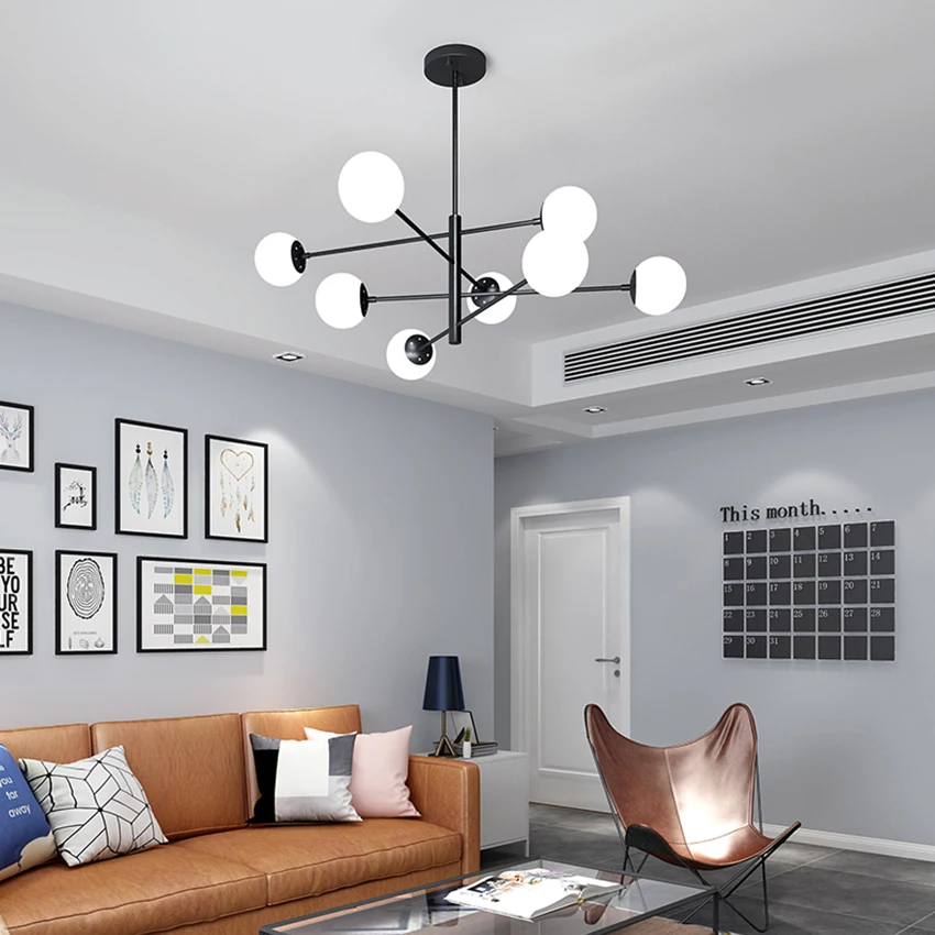 Скандинавский светильник для гостиной, светодиодная люстра, черный магический Бин, светодиодный подвесной светильник для столовой, спальни, люстра, светильник