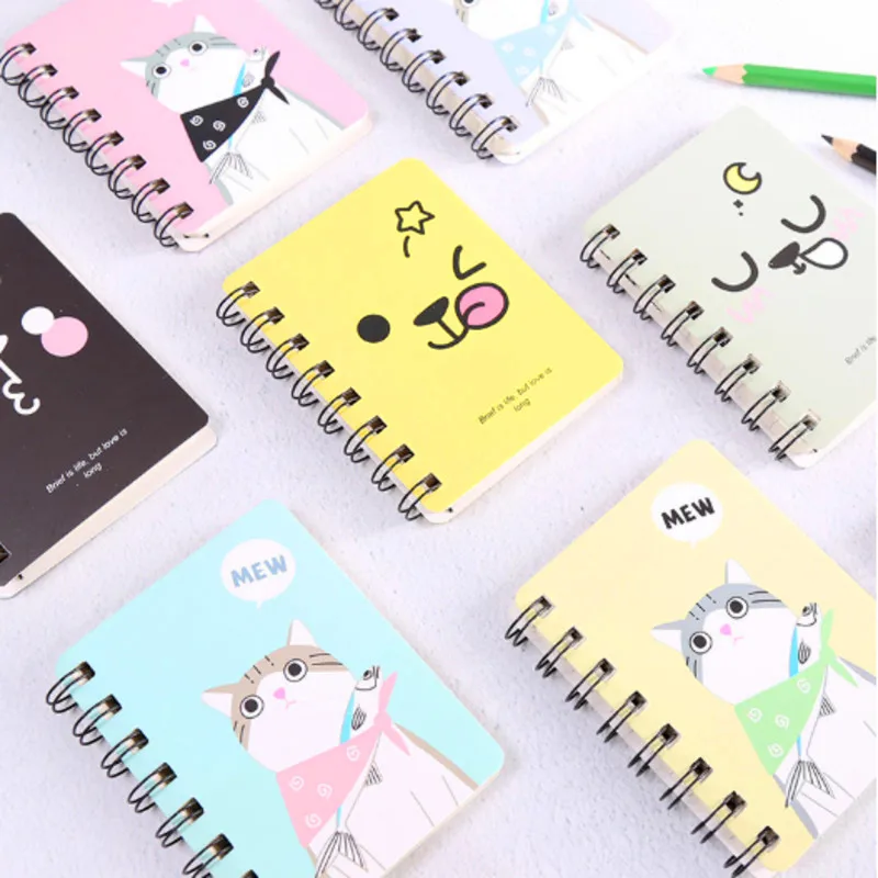 Название продукта: ноутбук с рисунком катушки Размер: 80*105 мм Вес: 50 г Количество страниц: 80 страниц Стиль изделия: розовый, черный, желтый, серый, фиолетовый кот, розовый кот, желтый кот, синий кот, случайный цвет