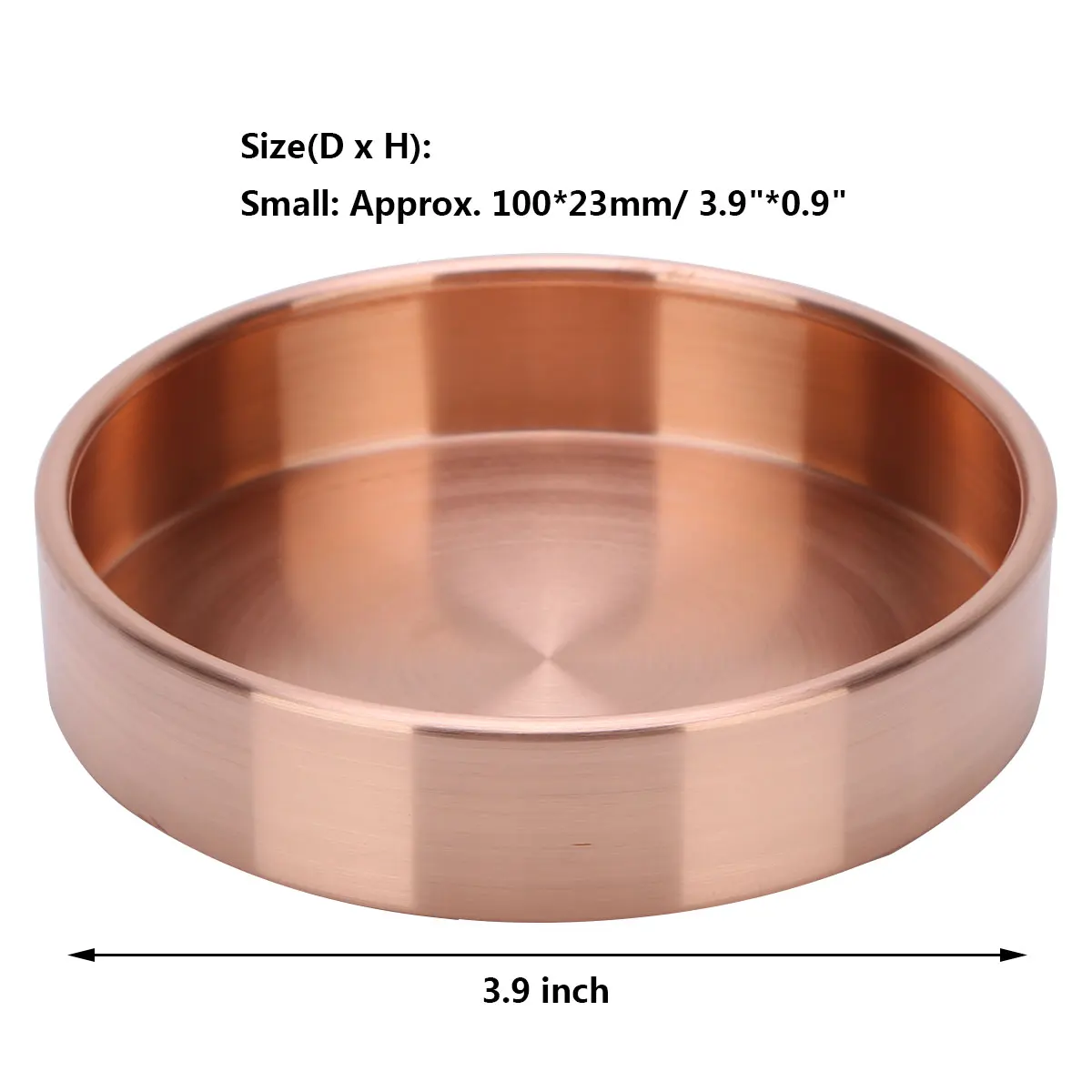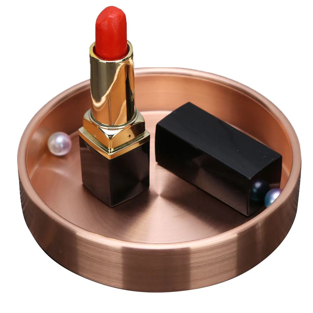 Круглый металлический латунный/медный поднос для дома, офиса, рабочего стола, маленькие предметы для хранения, органайзер для поддонов с кромкой, элегантные декоративные поделки