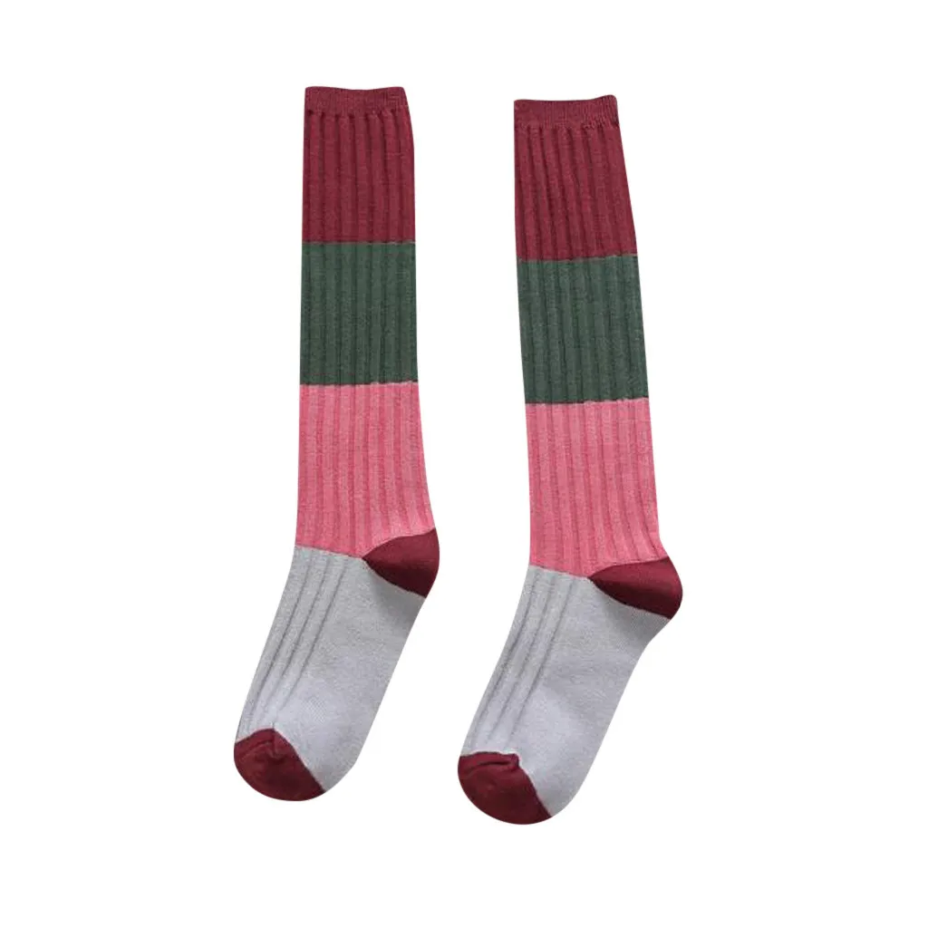 Женские Модные полосатые хлопковые Лоскутные Длинные носки до середины голени, чулки