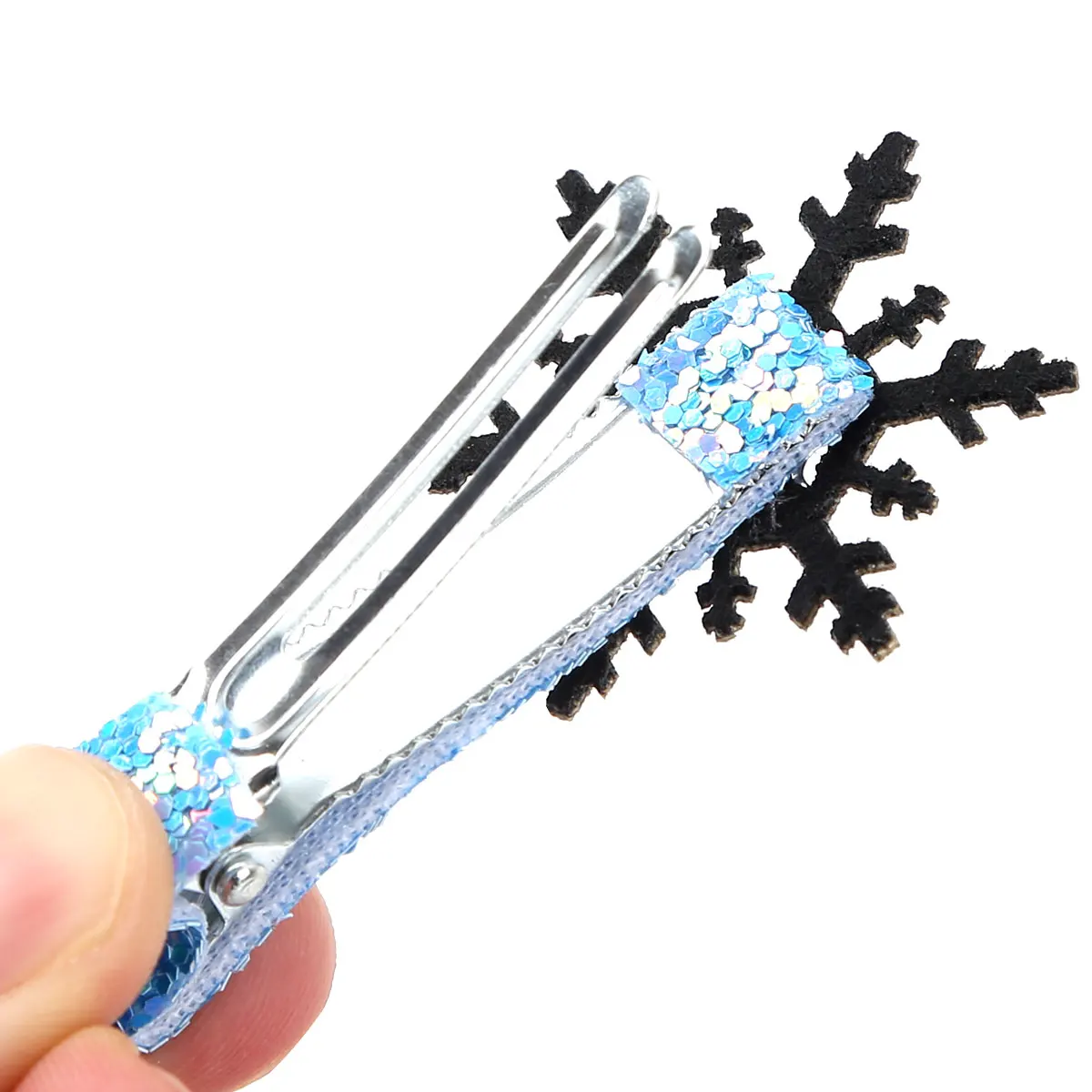 Блестящий защищенный зажим «крокодил» оформлен со снежинкой и стразы, простой и нежный.