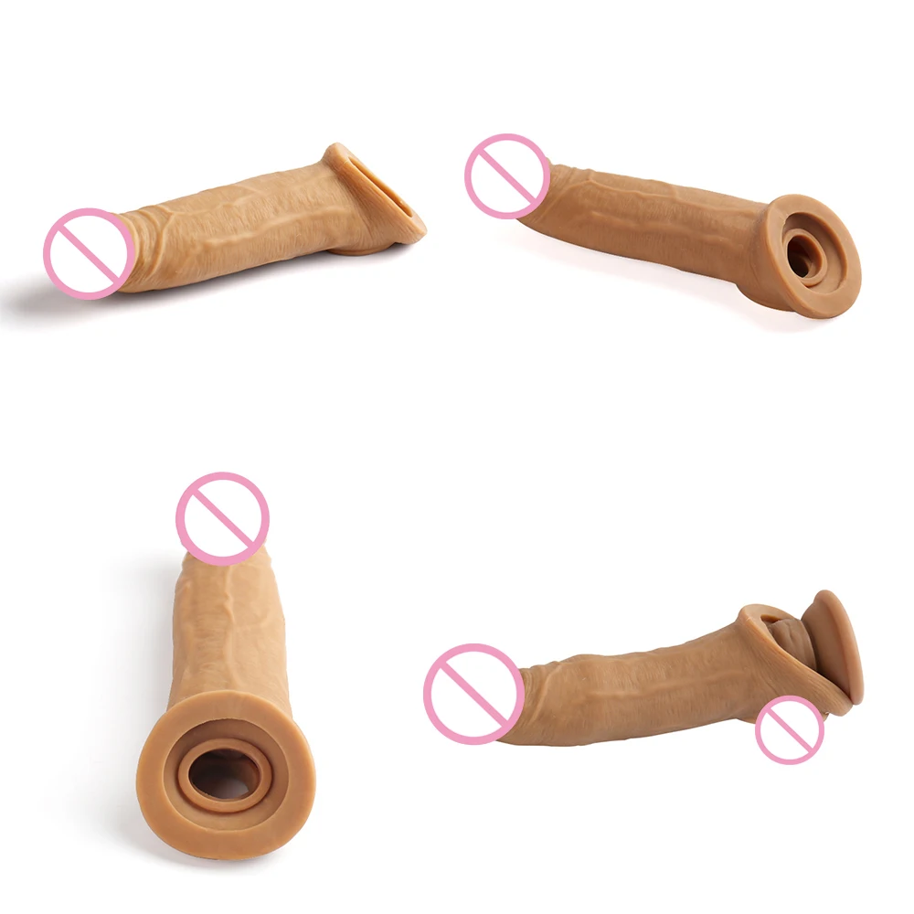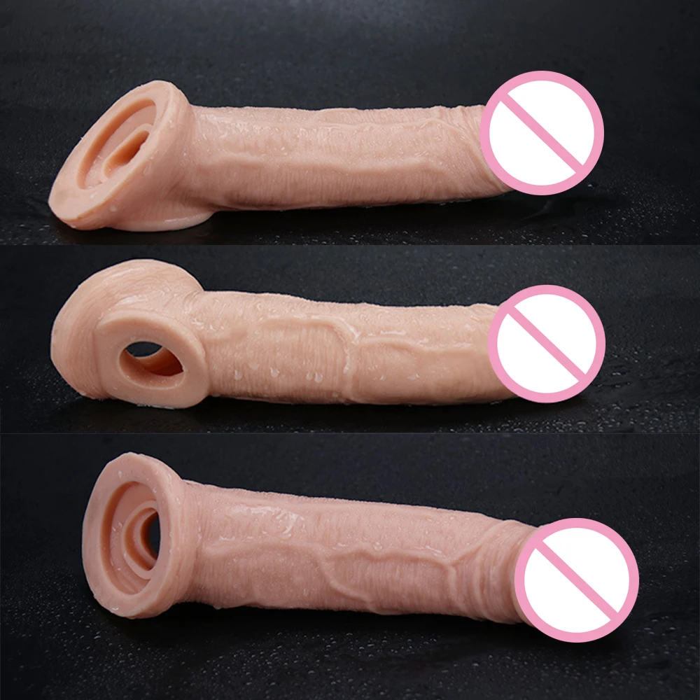 Изделие с твердым имитационным блеском Функция 3 в 1: resuable презерватив; Кольцо для пениса; Удлинитель для пениса Плотно прилегает и обшит для улучшения производительности.