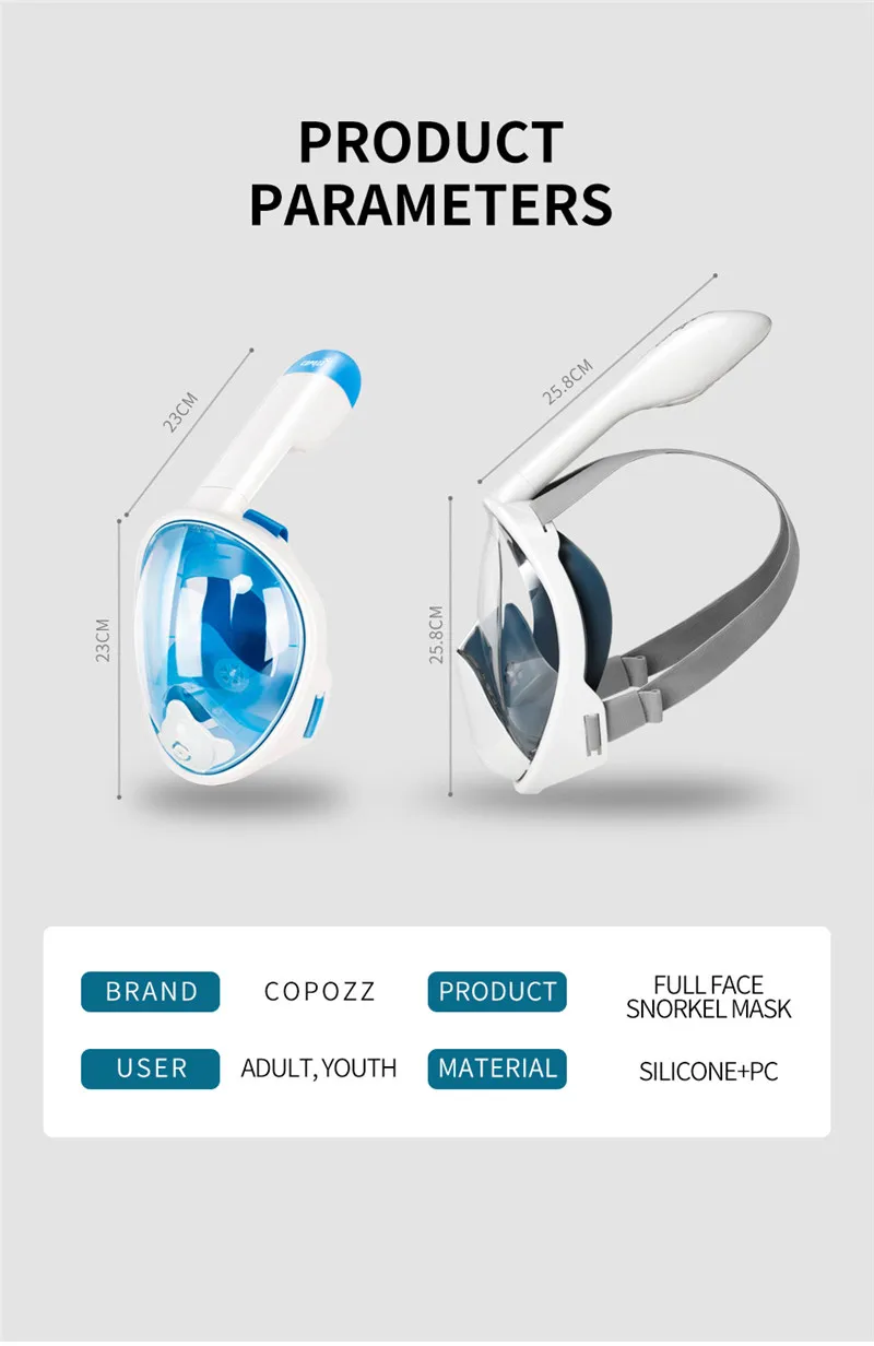 1. COPOZZ маска для подводного плавания для лица сочетает в себе уникальные особенности и отличный стиль для лучшего снорклинга. Позвольте вам получить больше из их подводных приключений.