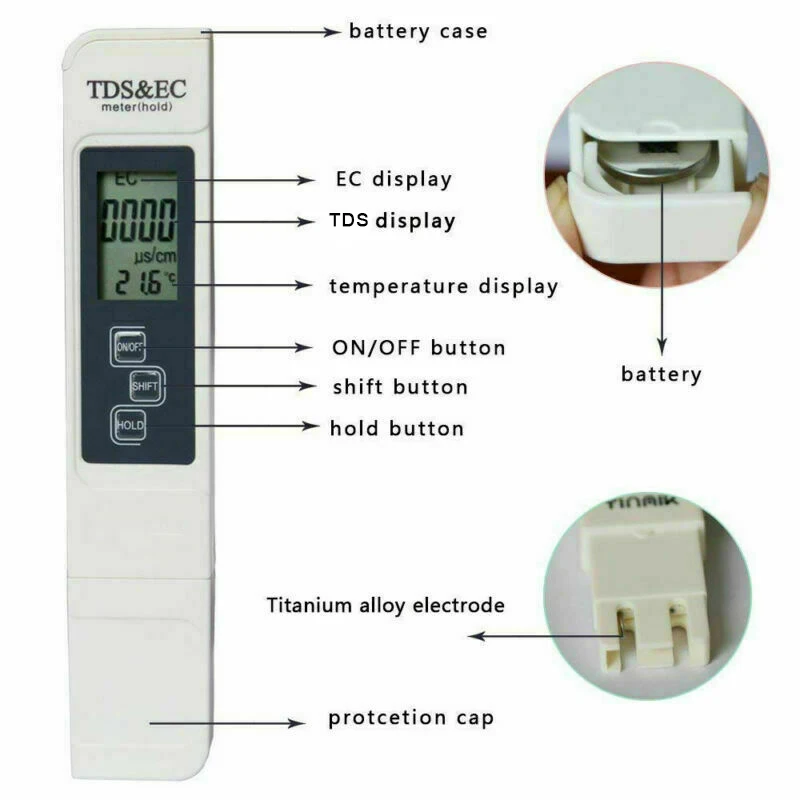 Размеры: EC:0-9990 УС/см; TDS:0-9990ppm