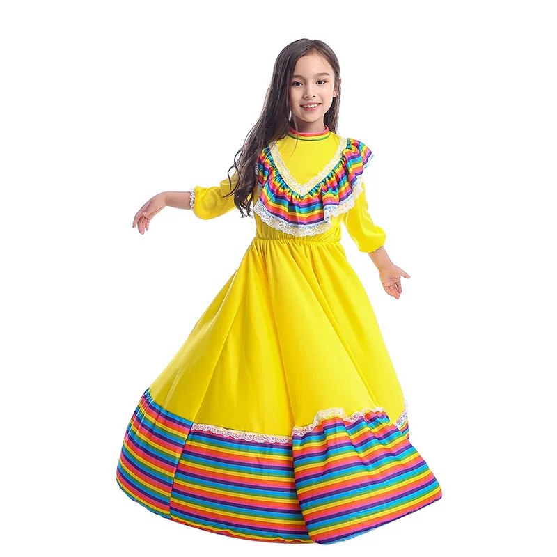 Traditional Mexican Girl Long Dress National Dance Clothing Children's Day Kid Girls Stage Performance Clothes Cosplay Costume