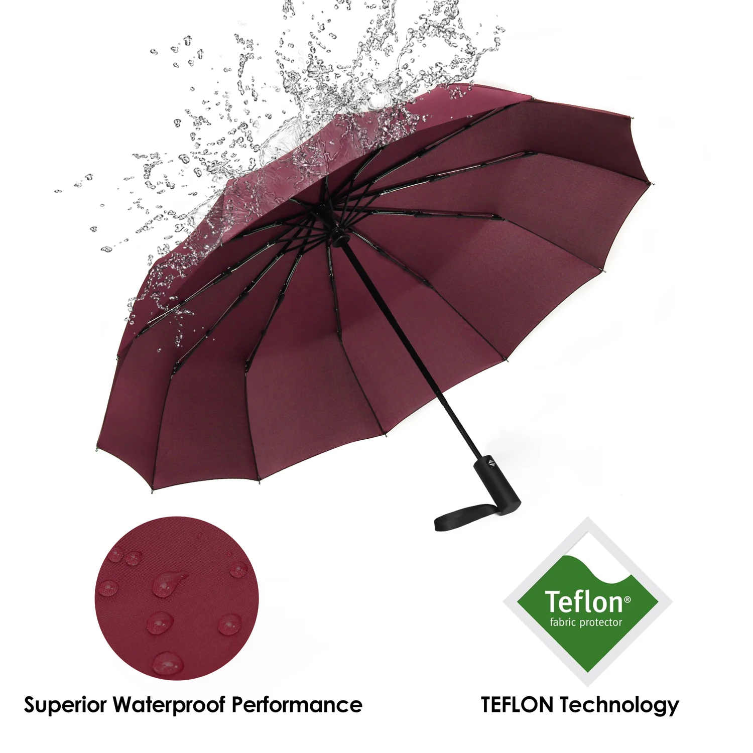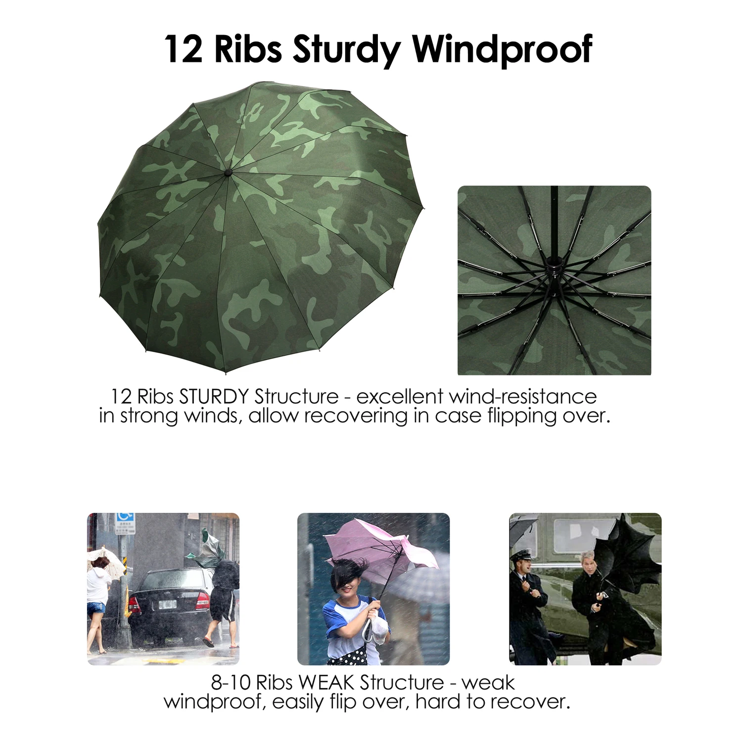 12 ребер цельная конструкция:Этот ветрозащитный зонтик с 12 ребрами обновил материал до высококачественного стекловолокна с полимерным покрытием и прочной рамой на основе традиционных 6-10 ребер. Он выдерживает Ветры до 70 MPH, даже в ливень и снежную погоду. Зонт также оснащен технологией fail-safe flip. Рама может легко отскакивать назад неповрежденной до своей нормальной формы, если зонтик-навес переворачивается наизнанку при сильном большом ветре. 46 "водоотталкивающий навес-быстрая Сушка:Размеры около 46 дюймов-118 см в диаметре при открывании. Он достаточно большой, чтобы укрыть 2 человека от ливня. Зонт-балдахин изготовлен из ткани с тефлоновым покрытием, с использованием ведущей международной водонепроницаемой технологии. Дождь не промокает ткань, а бусины в пузырях. Водонепроницаемое покрытие позволяет быстро сохнуть, и вы можете положить этот складной зонт обратно в сумку, портфели, рюкзаки, багаж для путешествий в короткие сроки после использования. Автоматическое открытие/закрытие и эргономичный NON-SLIP удобная ручка:Функция автоматического открытия/закрытия позволяет легко работать одной рукой. Просто нажмите кнопку один раз, чтобы автоматически открыть и нажмите еще раз, чтобы мгновенно сложить навес, закрытый за одну секунду. Эргономичная Удобная прорезиненная ручка для хорошего нескользящего сцепления для ветреных дождливых дней, со встроенным кнопочным механизмом, предотвращающим защемление руки, с ремешком на запястье для удобной переноски во время выхода на улицу.