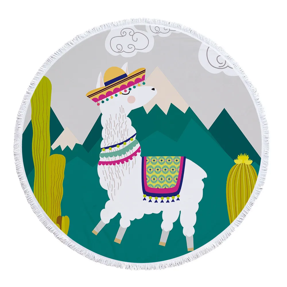 Круглый пляжное полотенце рисунок Альпака полотенца с кисточками полотенце с милым принтом Коврик для йоги мягкое одеяло Альпака пляжное полотенце