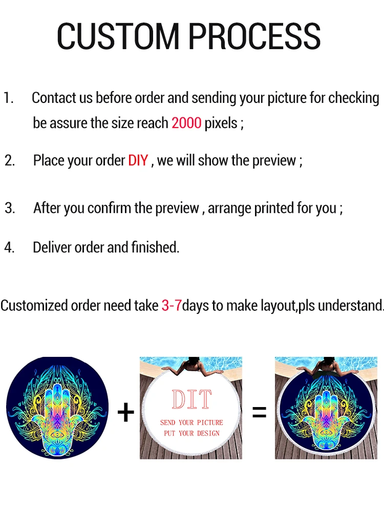 Материал: микрофибра Вес нетто: 550 г Толщина: умеренная Диаметр: 150 см (59,05 дюйма) Использование как: пляжное полотенце, банное полотенце, мат для йоги, накидка Bigini, одеяло для пикника, настенный гобелен, покрывало, Deskcloth.