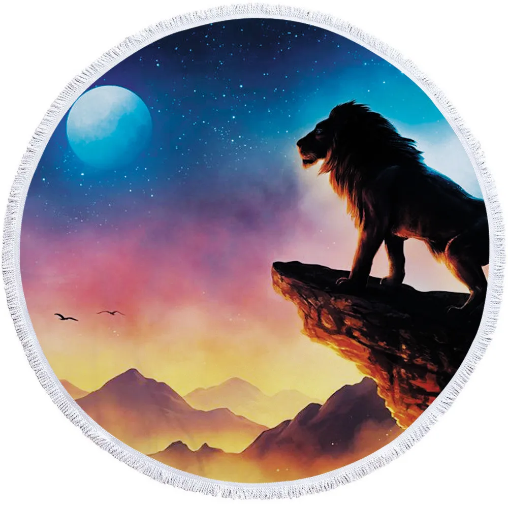 Материал: микрофибра Вес нетто: 550 г Толщина: умеренная Диаметр: 150 см (59,05 дюйма) Использование как: пляжное полотенце, банное полотенце, мат для йоги, накидка Bigini, одеяло для пикника, настенный гобелен, покрывало, Deskcloth.