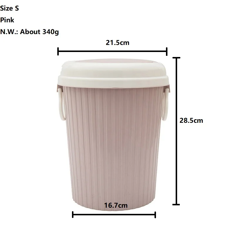 Description: Nordic Tash Can Specification: Healthy,Eco-friendly Mode#: W1908214 Material: Plastic Size S: 21.5x16.7x28.5cm Size M: 24.5x19.2x31.5cm Size L: 27x22x36cm Net Weight: About 340g,493g,630g Use: To Storage Garbage in Living Room,Kitchen,Bedroom etc Color: Pink,Light Gray,Khaki Package: Individual package Note: Due to lighting effects, monitor's brightness , contrast settings etc, there could be some slight differences in the color tone of the pictures and the actual item. Please allow 1-3cm error due to manual measurement and make sure you do not mind before ordering.