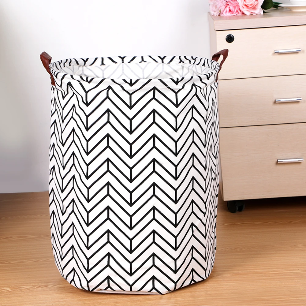 Practical Round Laundry Basket Geometric Hamper Foldable Storage Bin Clothes Toy Collapsible Holder Organizer Arrows 1pc
