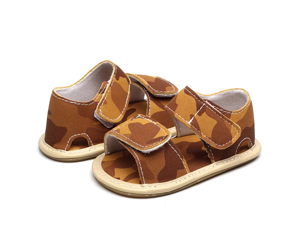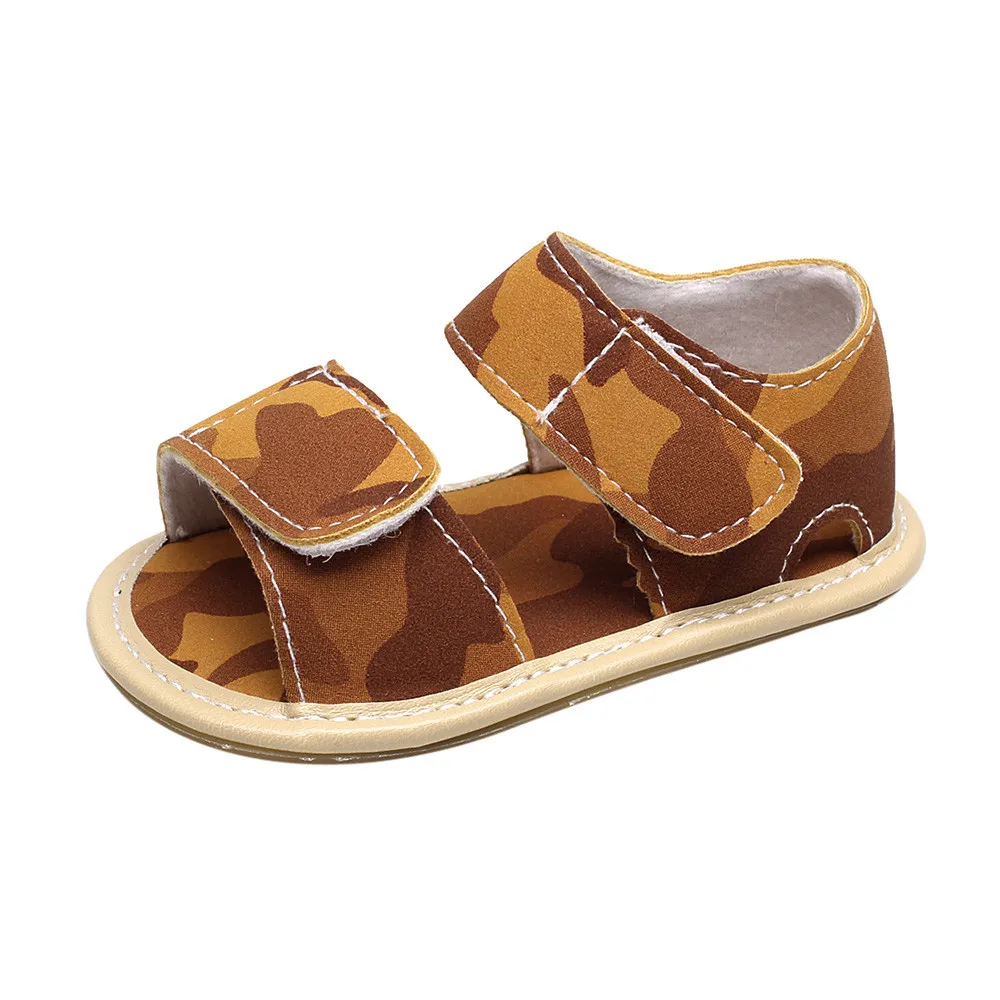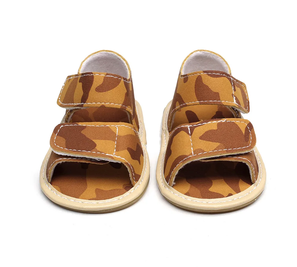 Кожаные камуфляжные сандалии для новорожденных мальчиков и девочек; Летняя мягкая обувь на плоской подошве