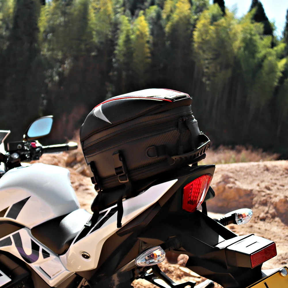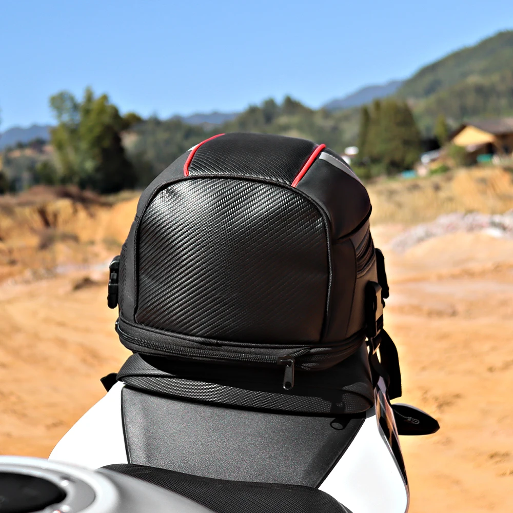 Очень практичная сумка для хвоста мотоцикла сЗастежка-молния и пряжка,Это позволяет вам лучше ездить.