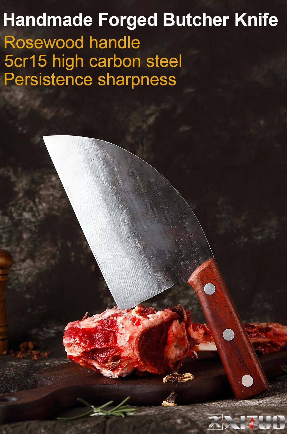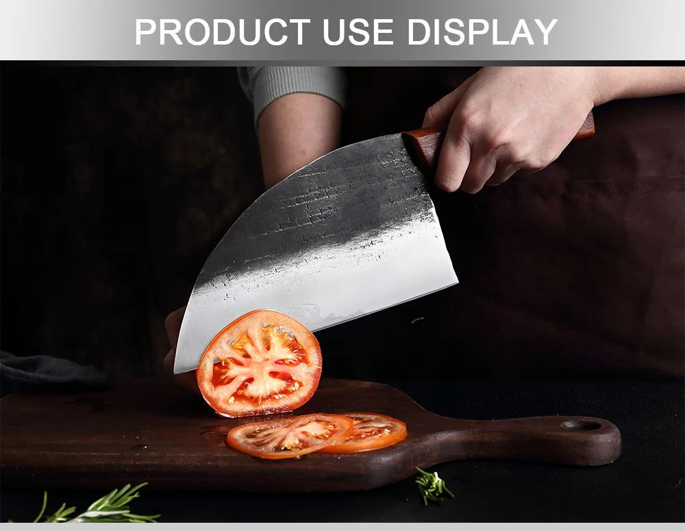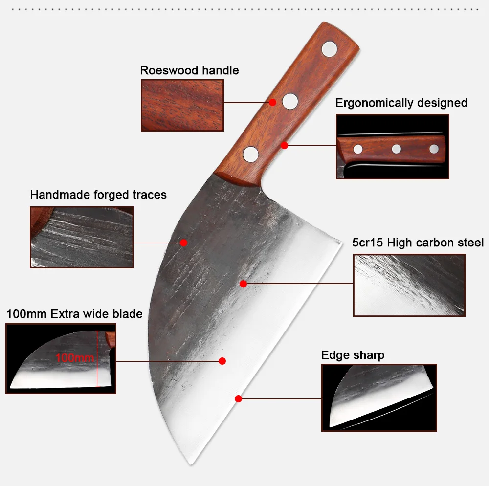 Материал из углеродистой стали: Отборная Высококачественная Высокоуглеродистая сталь 5CR15, многократная ковка, высокое качество, высокая твердость и острое лезвие.