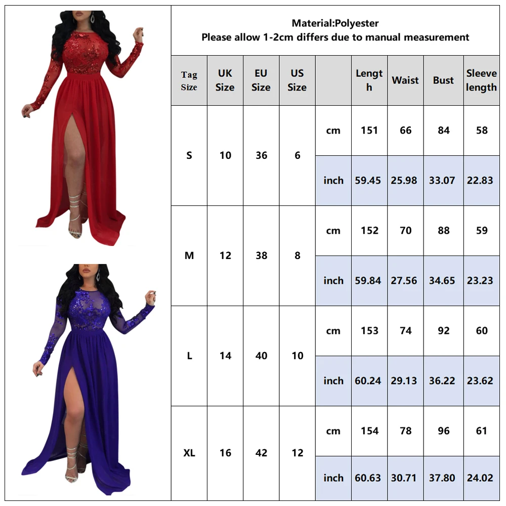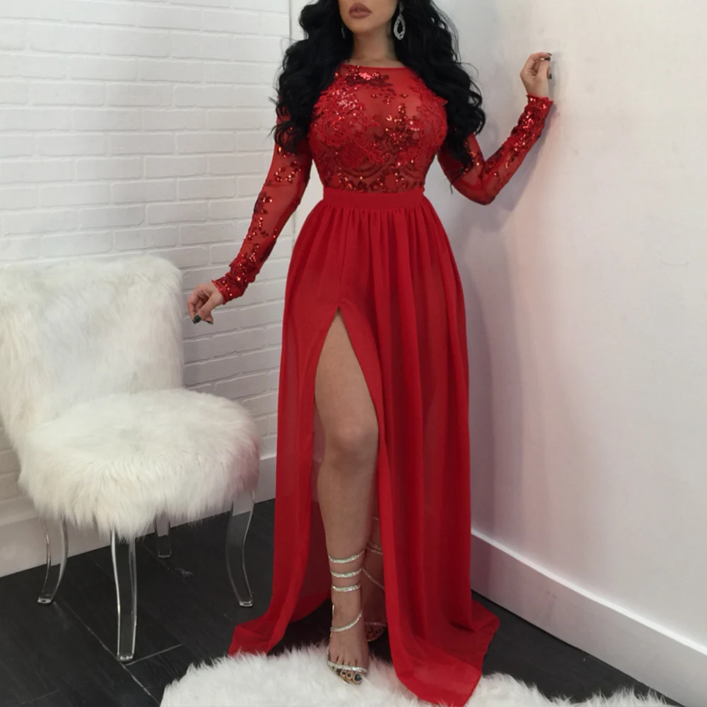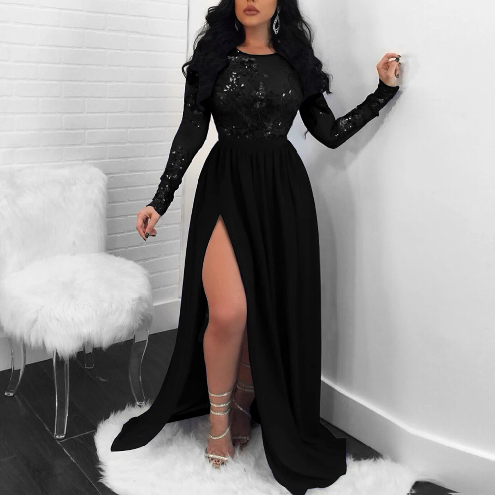 Особенности продукта: Основной материал: полиэстер Популярный элемент: кружево, пайетки Повод: вечерние Стиль: сексуальный Детали: эластичный пояс Длина: длинная Длина: длина до пола Вырез: круглый вырез Длина рукава: полная Рисунок: однотонный Сезон: зима Размер: S, M, L, XL Уход За Одеждой: ручная стирка, машинная стирка Таблица размеров: