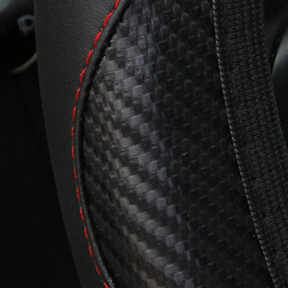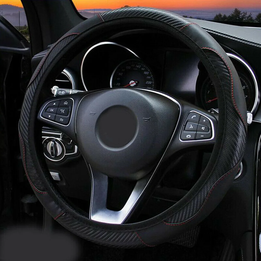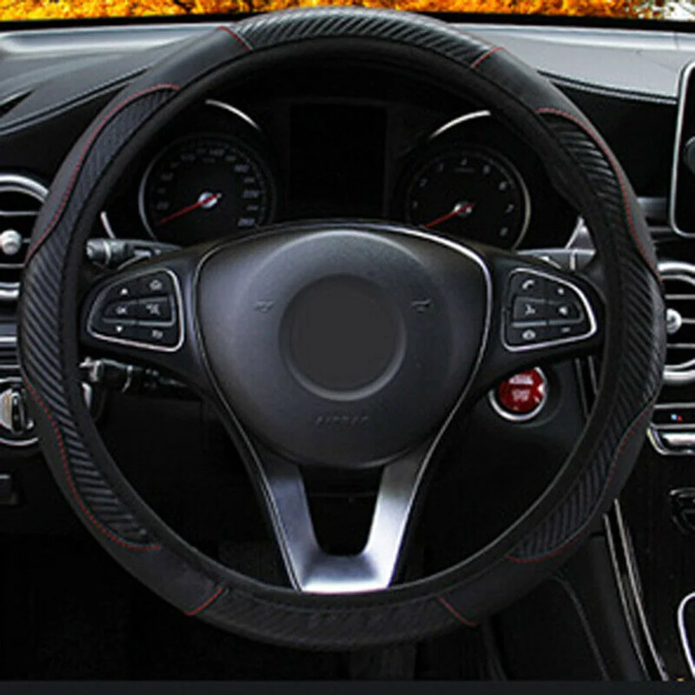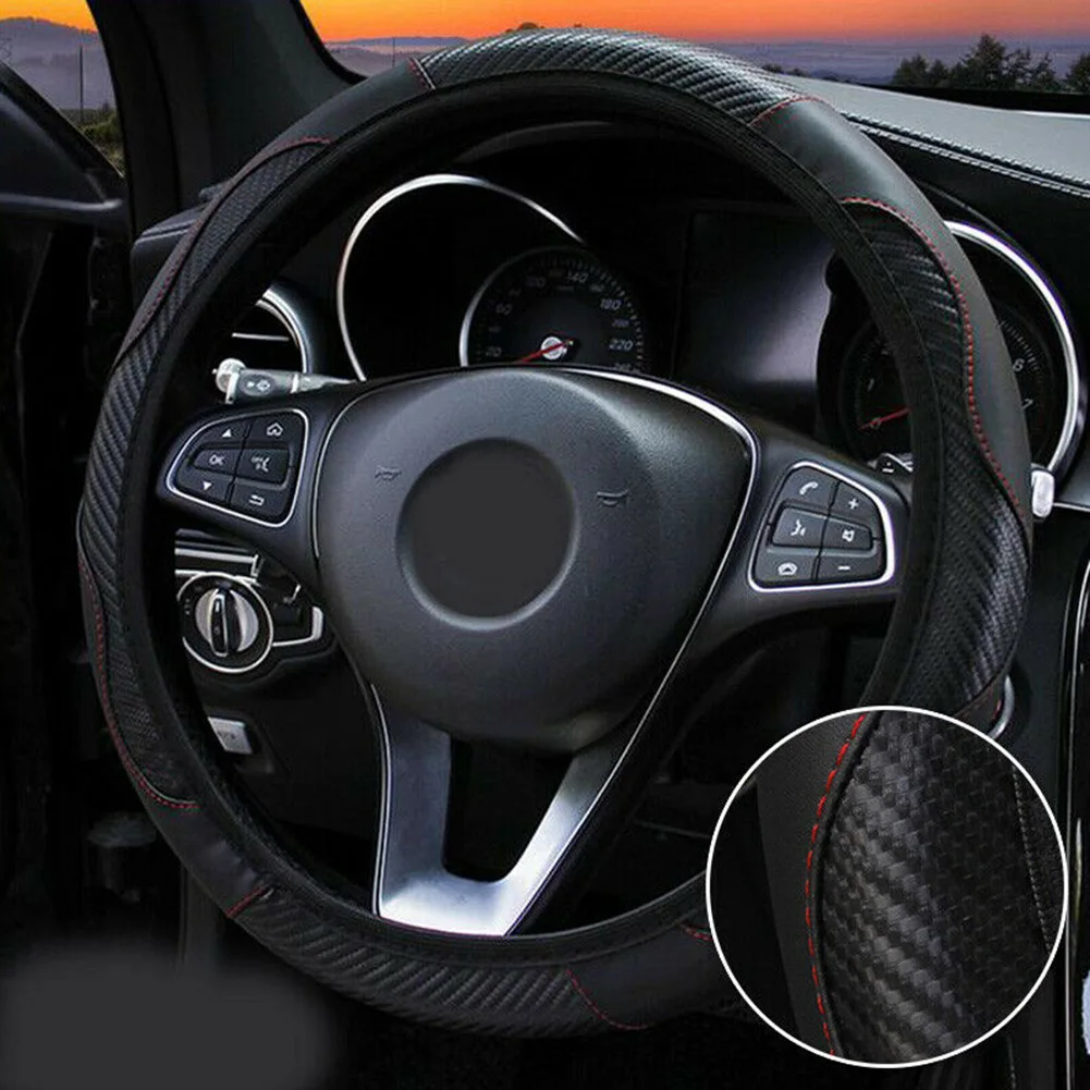 *1.38CM Car Carbon Fiber Leather Steering Wheel Cover Elastic Black No Inner Ring