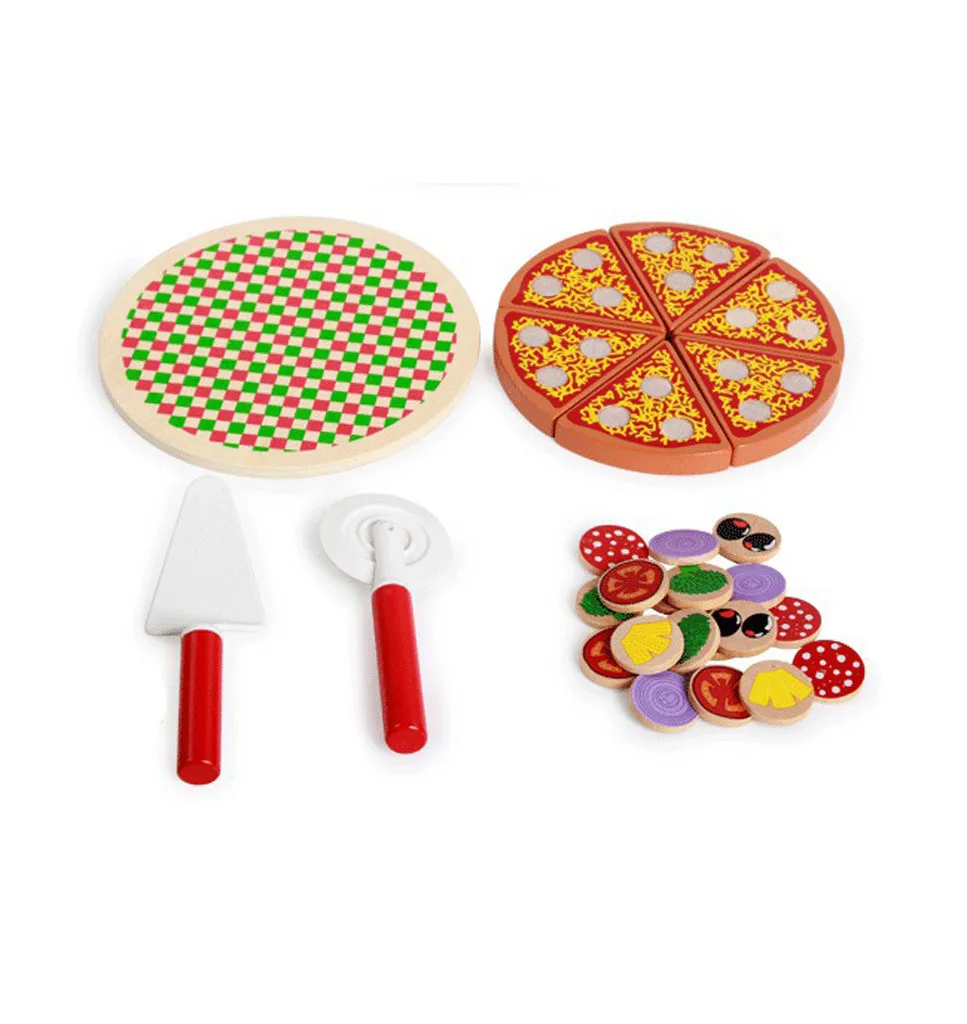 Pizza Wooden Toys Kids Food Cooking Simulation Tableware Children Kitchen Pretend Play Toy Fruit Vegetable with Tableware