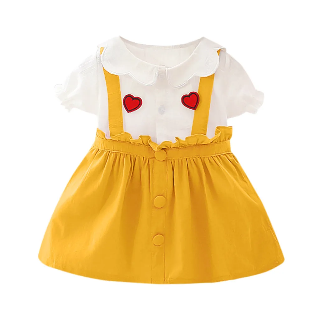 Платье из двух предметов с принтом «любовь» мини-платье принцессы с короткими рукавами и оборками для маленьких девочек костюм для маленьких девочек vestido
