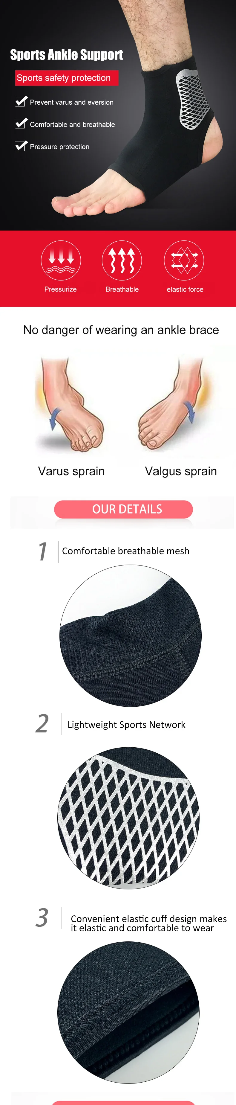 Защита лодыжки-это своего рода легкий прибор для защиты лодыжки, который может предотвратить растяжение лодыжки, травму лодыжки, нестабильность лодыжки и так далее. Это может ограничивать движение лодыжки влево и вправо, предотвращать растяжение, вызванное пронацией лодыжки, уменьшать давление на поврежденную часть лодыжки, укрепляет лодыжку и способствует восстановлению мягкой ткани.
