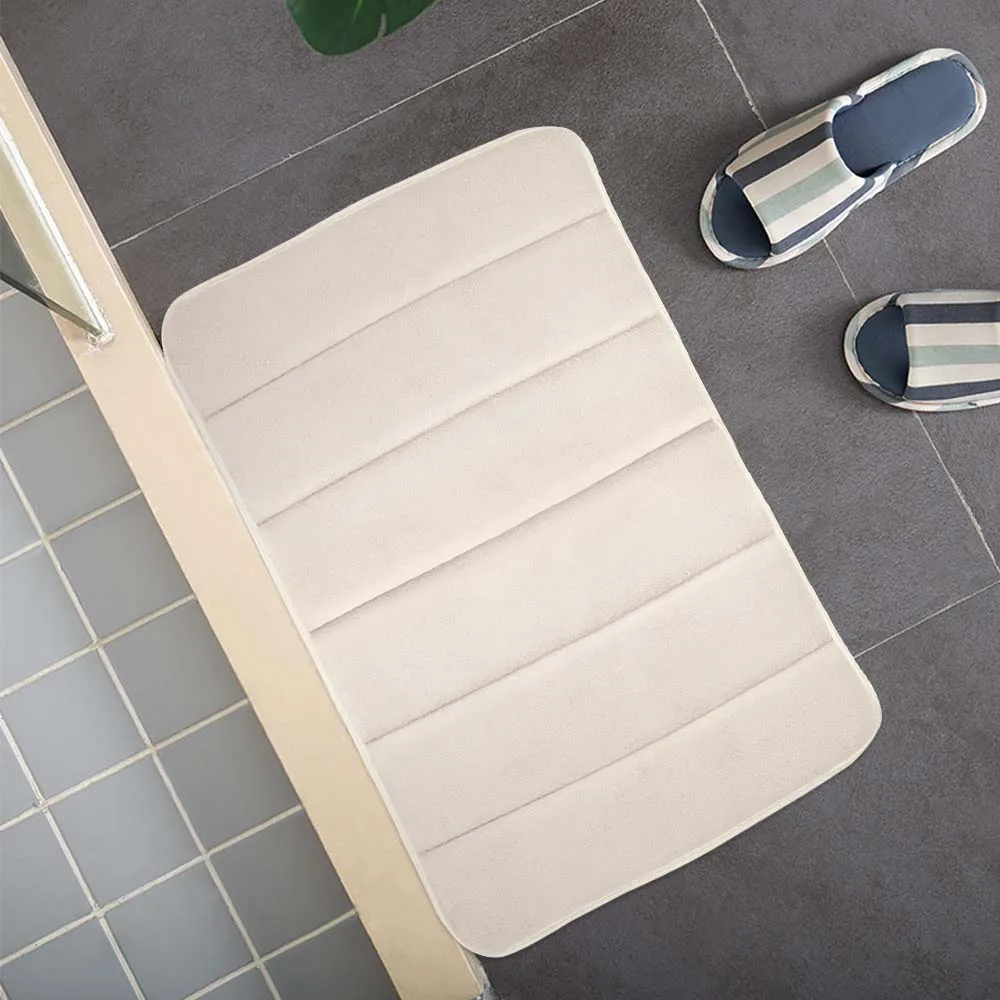 Поверхность изготовлена из кораллового флиса, мягкая и удобная, нескользящая подошва из латекса, внутренняя подкладка из пены с эффектом памяти, пена с эффектом памяти отличается от других ковриков для ванной комнаты тем, что ее легче чистить и она будет лепить под форму своего индивидуального тела, поэтому она ощущается более удобной и мягкой.