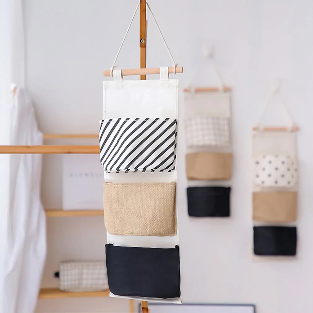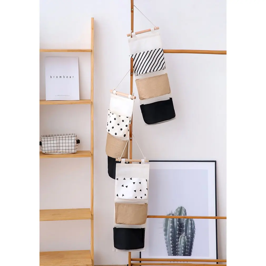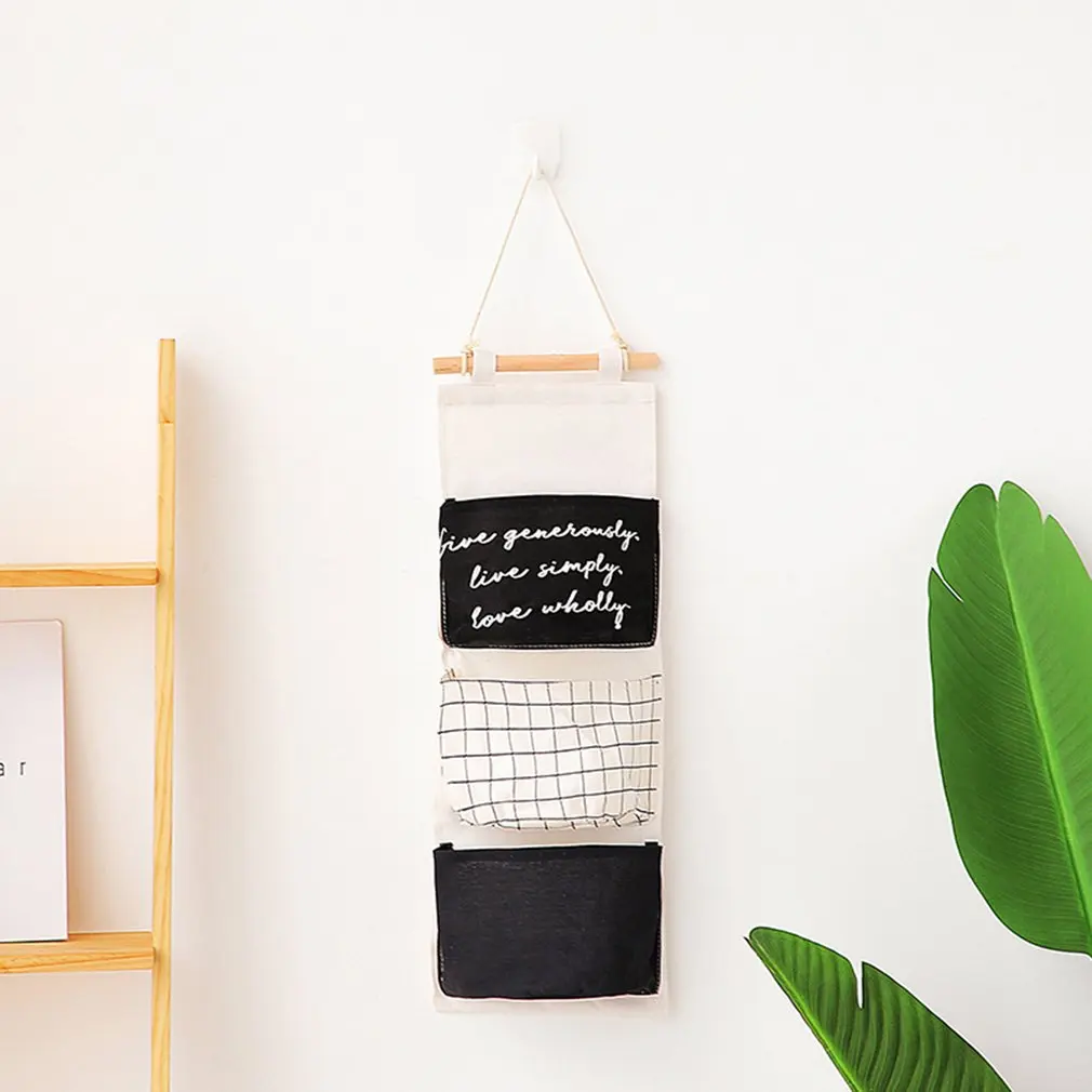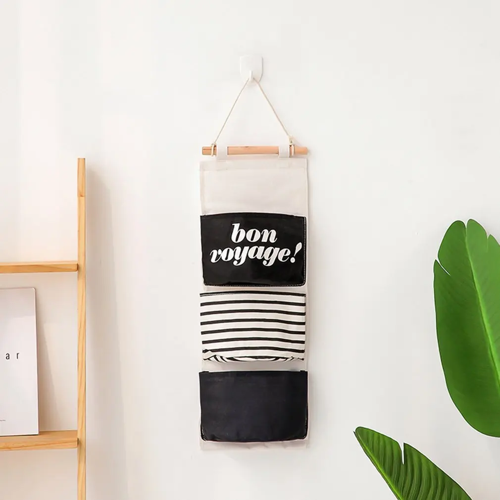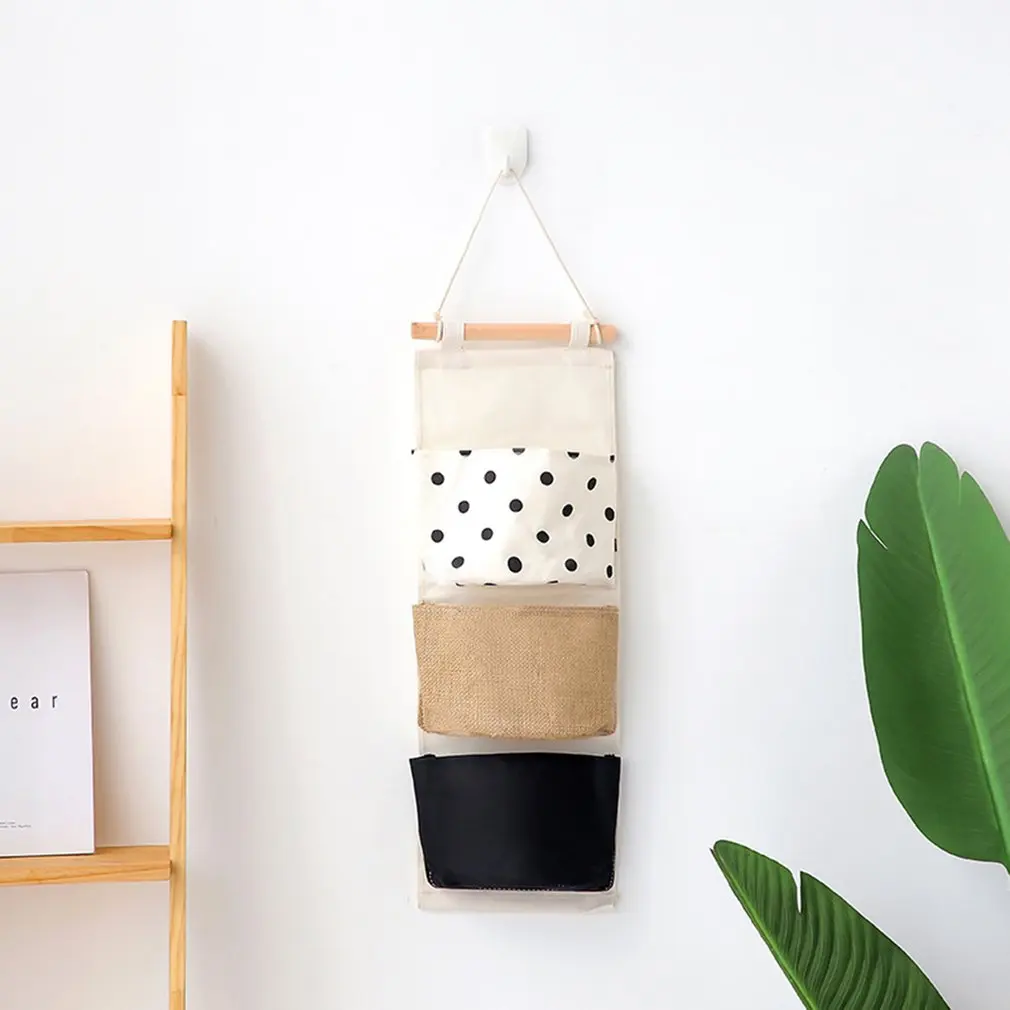Хлопковая льняная подвесная сумка для хранения, 3 кармана, настенный шкаф, подвесная сумка, настенная сумка, органайзер для косметических игрушек