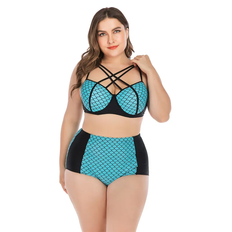 Женский раздельный купальник бикини большого размера с цветочным принтом 2019, сексуальный купальник для женщин, бикини из двух частей, купальник с высокой талией, пляжная одежда