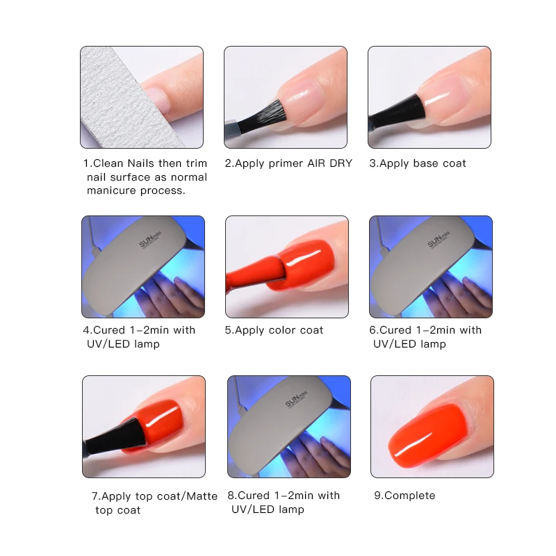 Шаг 5. Нанесите второй слой цветного геля, а затем немедленно закрепите УФ-лампой в течение 2 минут или вылечите светодиодный светильник в течение 60 секунд.