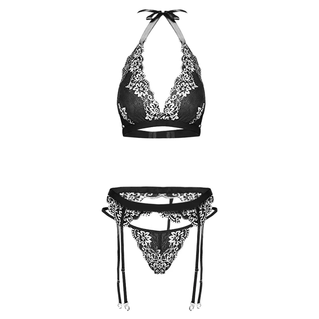 Женское кружевное нижнее белье на бретельках, пикантный Комплект из трех предметов, пижама, комплект нижнего белья