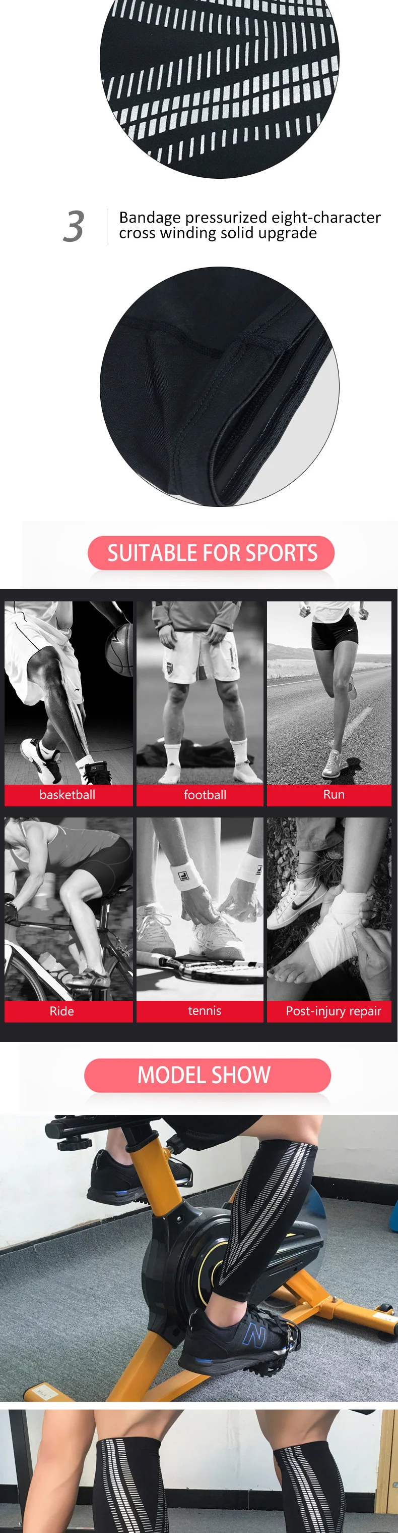 Защита ног улучшает возврат крови путем давления на нижнюю часть ноги, чтобы сделать больше крови и кислорода входят в сжатую мышцу, и помогает отвлекать отходы, чтобы сделать кровообращение и лимфатическую систему гладкой и беспрепятственной. Он разработан в соответствии с формой наших телят. Он соответствует форме наших ног во время упражнений. Это умеренное давление для защиты наших мышц и улучшения их производительности. Он может быстро впитывать пот во время физических упражнений и обладает УФ-эффектом.