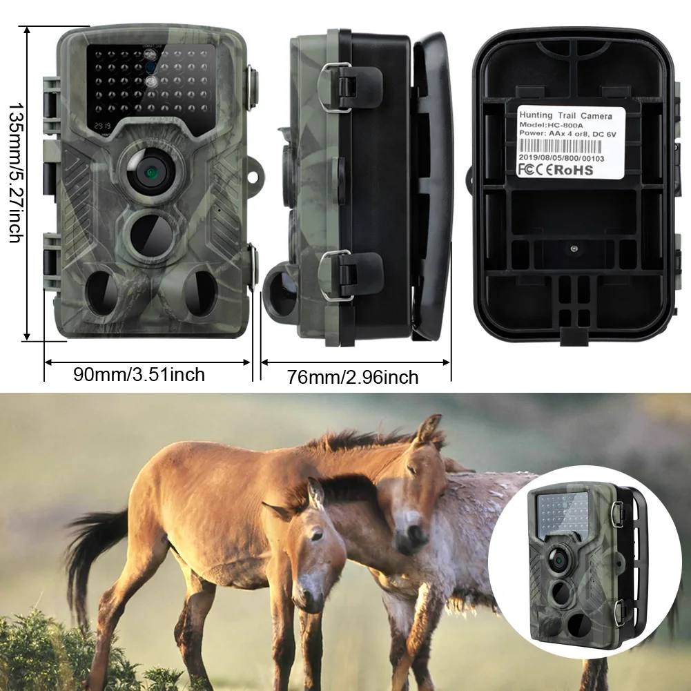 -Датчик изображения: CMOS -Подключение: USB 2,0 -Водонепроницаемость: IP66 -Время съемки: 0,6 s -Расстояние обнаружения: 20 м -Разрешение фото: 12 МП -Разрешение видео: 1920x1080 пикселей -Карта памяти: до 32 Гб (не входит в комплект) -Мощность питания: переменный ток 5 В/4 шт 1,5 V AA батареи (не прилагаются) -Посылка включает в себя: -Камера Trail-1 шт. -Ремешок-1 шт. -1 х USB кабель -Руководство пользователя-1 шт.