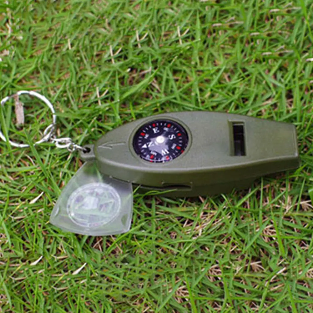 * 1. Компас, свисток, лупа, термометр, 4 функции в одном.