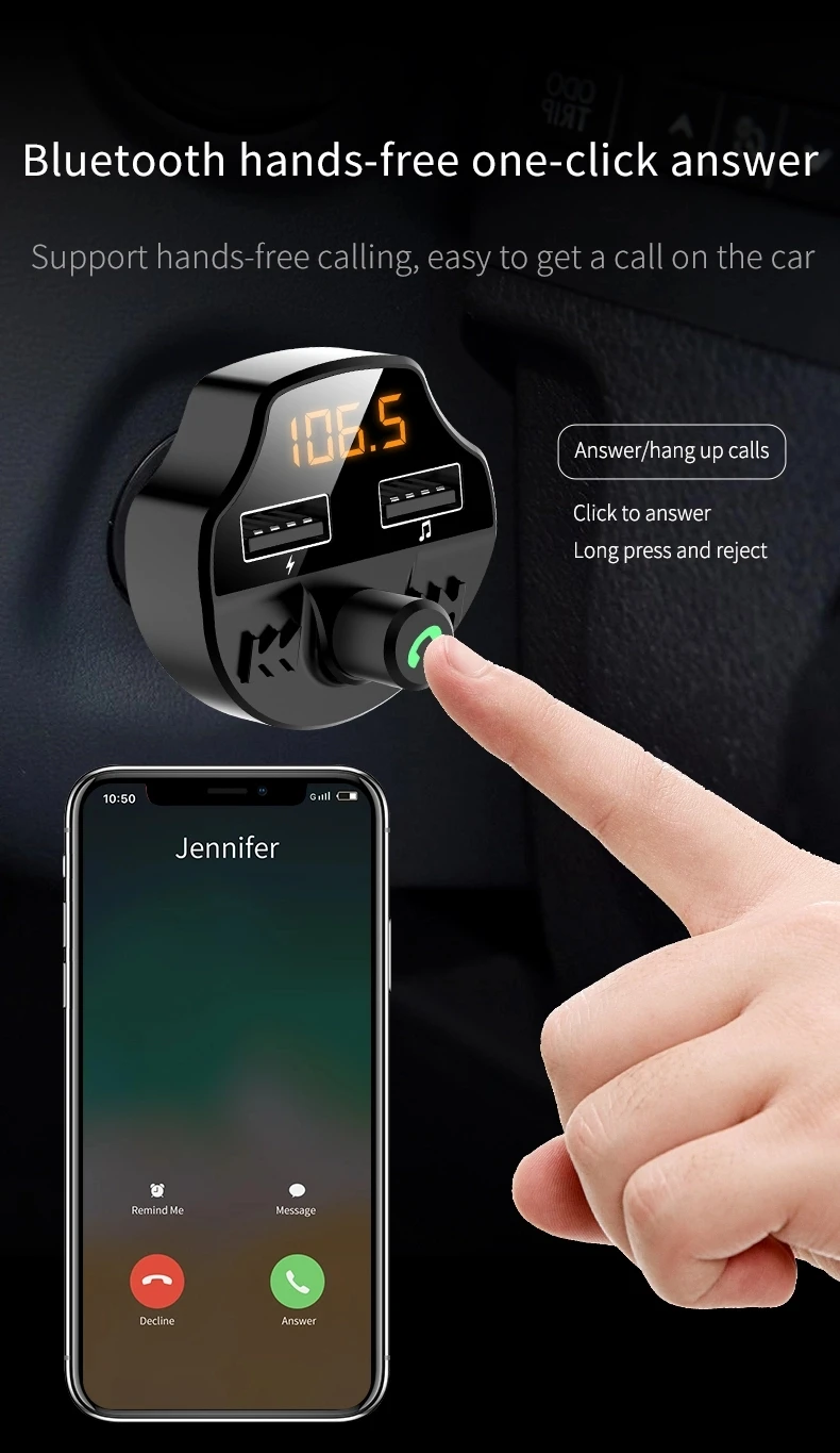 1. Интеллектуальное снижение шума CVC Автомобильный MP3-плеер принимает интеллектуальное шумоподавление CVC, чтобы обеспечить вам высокое разрешение и высокую производительность стерео. Не застревает, плеер может поддерживать lossless музыку, такую как MP3/FLAC/WMA/APE. 2. Два порта USB Два usb-порта обеспечивают интеллектуальную быструю зарядку 3,1 А. И вы можете одновременно заряжать два цифровых устройства. 3.Bluetooth 5,0 Автомобильный MP3-плеер совместим с системами android и ios. Bluetooth 5,0 обеспечивает более стабильную и быструю передачу данных. Он также поддерживает звонки без рук, которые легко получить вызов на машине. 3.U диск/TF карта plug and play Автомобильный MP3-плеер может не только регулировать частоту автомобильного радио и частоту mp3, но также поддерживает u-диск и tf-карту простым управлением. Подключи и играй, вы получите больше песен для игры. 4. Прочная Совместимость Автомобильный MP3-плеер совместим с большинством приложений карты, музыкальных приложений и программного обеспечения чата, таких как QQ и WeChat. Подключите плеер к телефону, проигрыватель будет совместим с большинством приложений на вашем телефоне. 5. Автоматическая регулировка громкости Автомобильный MP3-плеер может автоматически уменьшать громкость музыки при навигации и возвращать громкость при отсутствии навигации. 6. Функция воспроизведения памяти отключения питания После выключения питания Автомобильный MP3-плеер может автоматически переключаться на частоту памяти и песню перед выключением. (Случайное отключение питания, помните текущее положение играющей в данный момент песни, отключение питания в режиме паузы музыки, вы можете запомнить второй.) 7. Умный чип Автомобильный MP3-плеер обладает интеллектуальным чипом master и восьмиконтурной защитой, что является более безопасным и безопасным в использовании. Функции защиты включают защиту от перенапряжения, защиту от перенапряжения, защиту от перегрузки, защиту от обратной вставки, защиту от перегрева, защиту от короткого замыкания, защиту от перегрузки по току и электромагнитную защиту. 9. Универсальный Автомобильный MP3-плеер с компактным размером и усиленной нескользящей шрапнель с обеих сторон подходит для автомобилей 12-24 В, внедорожников, фургонов, больших грузовиков, внедорожников и автобусов. 10. Использование: Вставьте продукт в прикуриватель, а затем установите частоту запуска продукта на ту же частоту, что и частоту приема FM в автомобиле, чтобы воспроизводить музыку на мобильный телефон или U-диск. Подключите телефон к плееру. Затем откройте приложение для воспроизведения музыки или ответа на телефонный звонок.