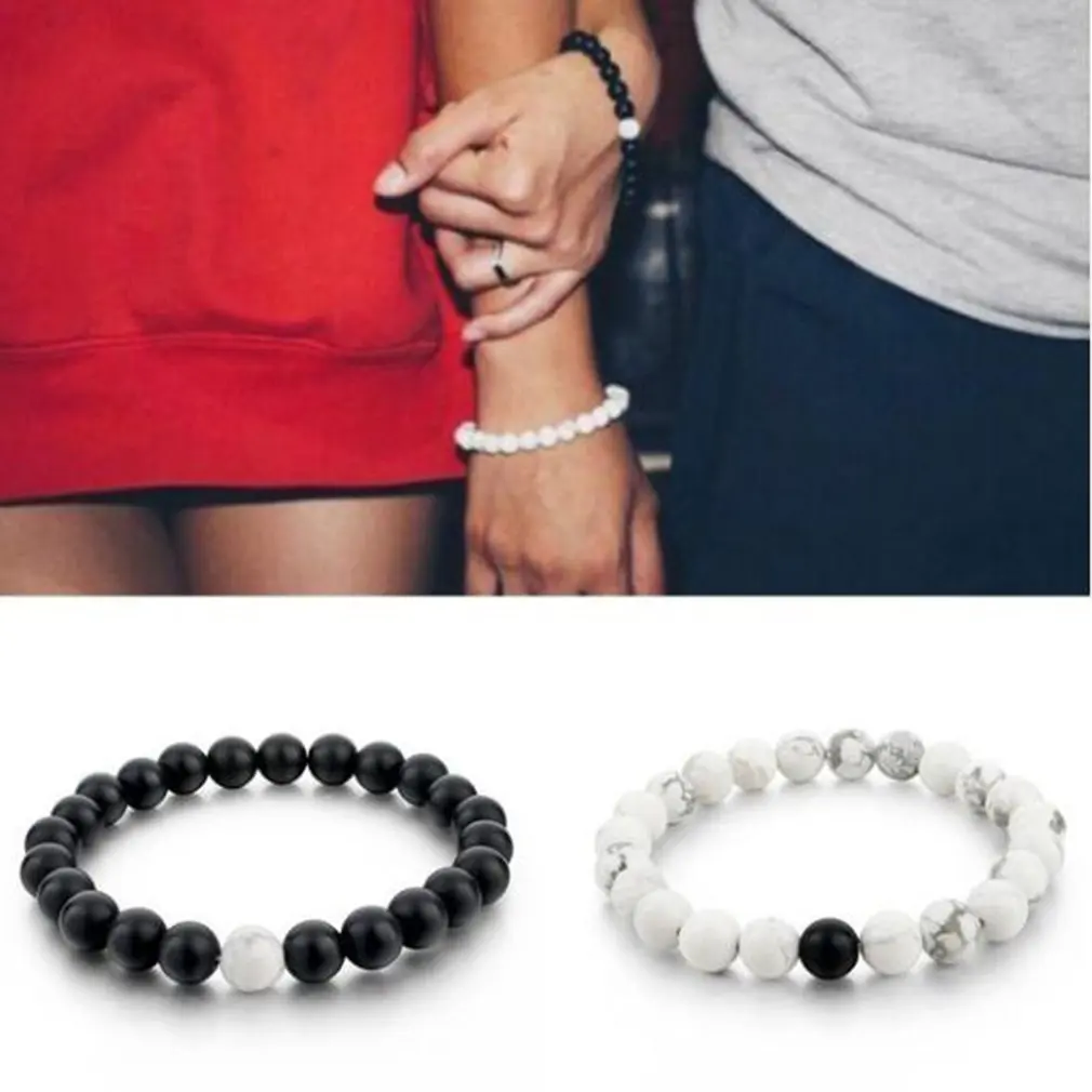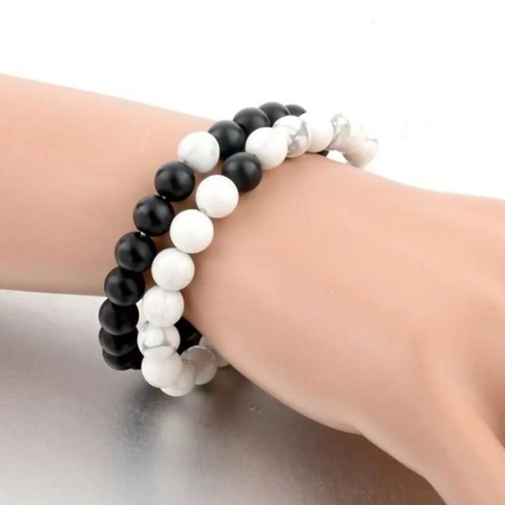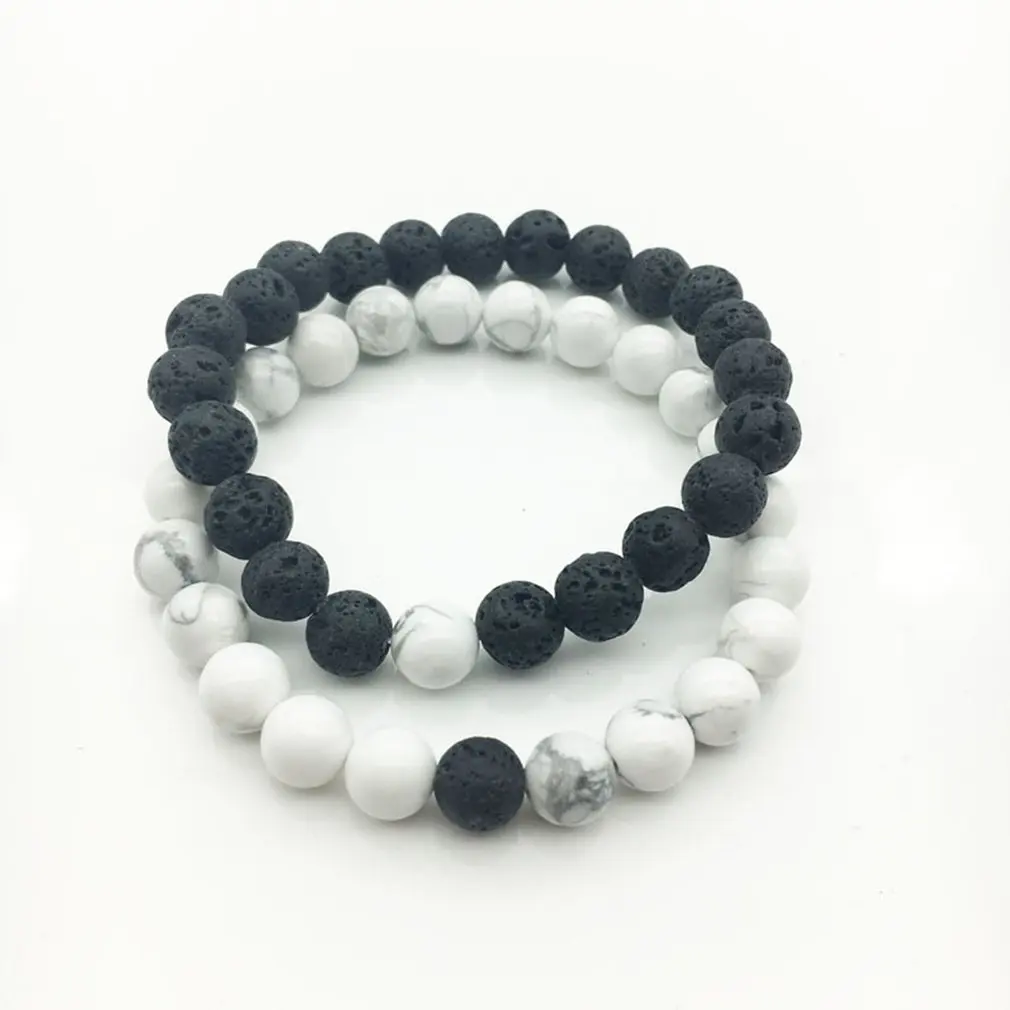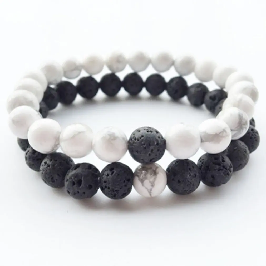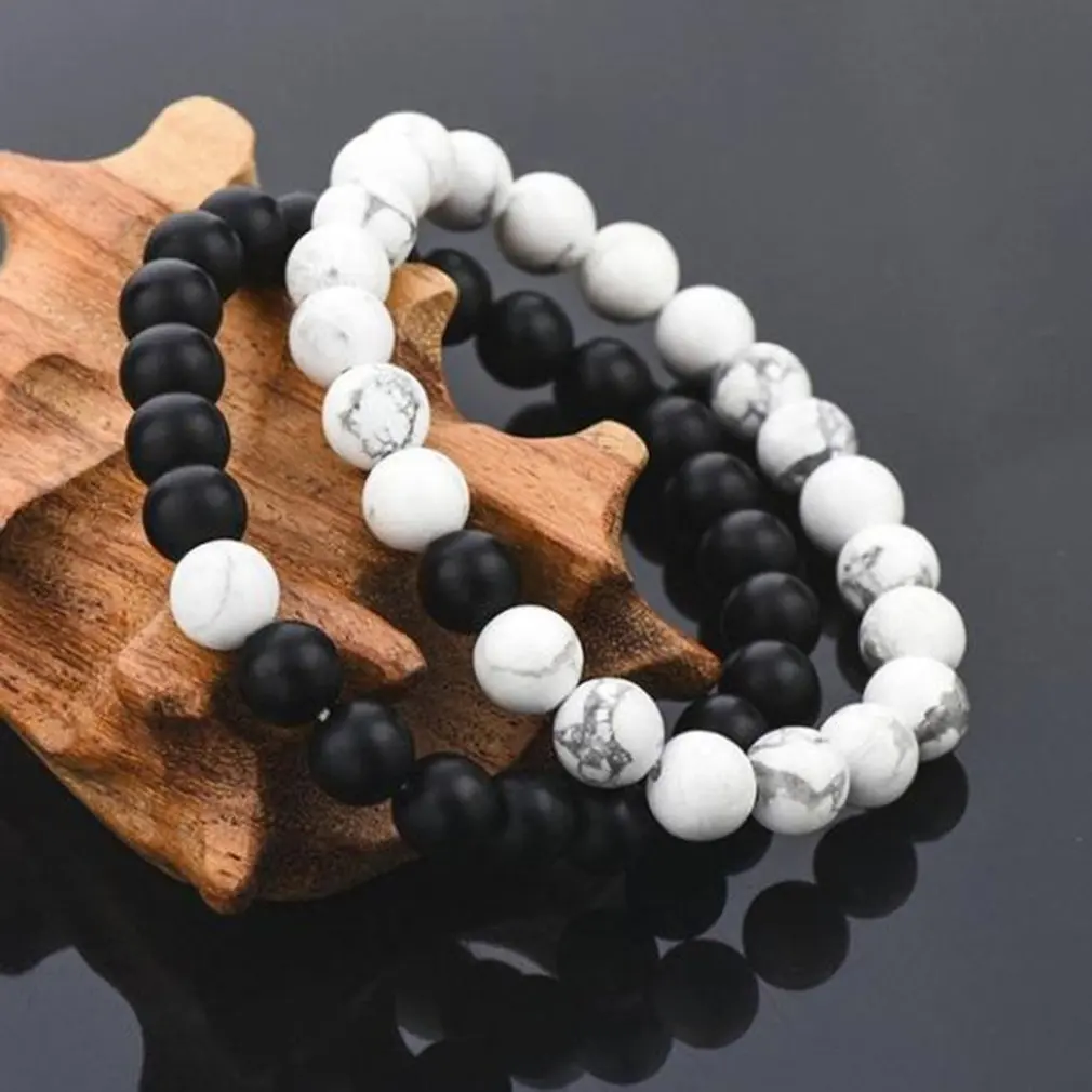 Материал: 8 мм Черный Матовый Агат и Белый Howlite мужской размер: 7 "-8,5" (18 см-21 см) женский мужской размер: 6,5 "-7,5" (16 см-19 см)